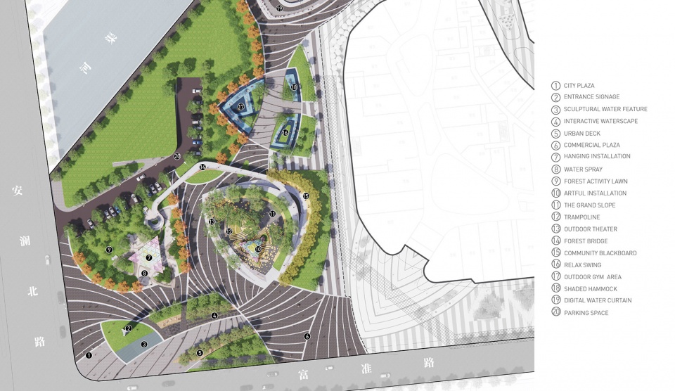 Different from the mega cities, Huai’an is an ancient city with history of rise and fall. People in Huai’an tend to be more calm and content with their life. By the intersection of An’ lan Road and Fuzhun Road, is an area of hard-ware factories, where open public space is in high scarcity. The birth of the Puzzle Park is a precious gift for adjacent neighborhood and even city of Huai’an.