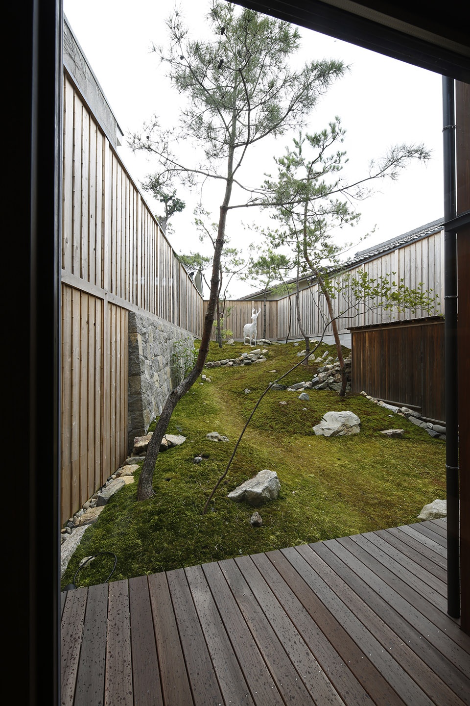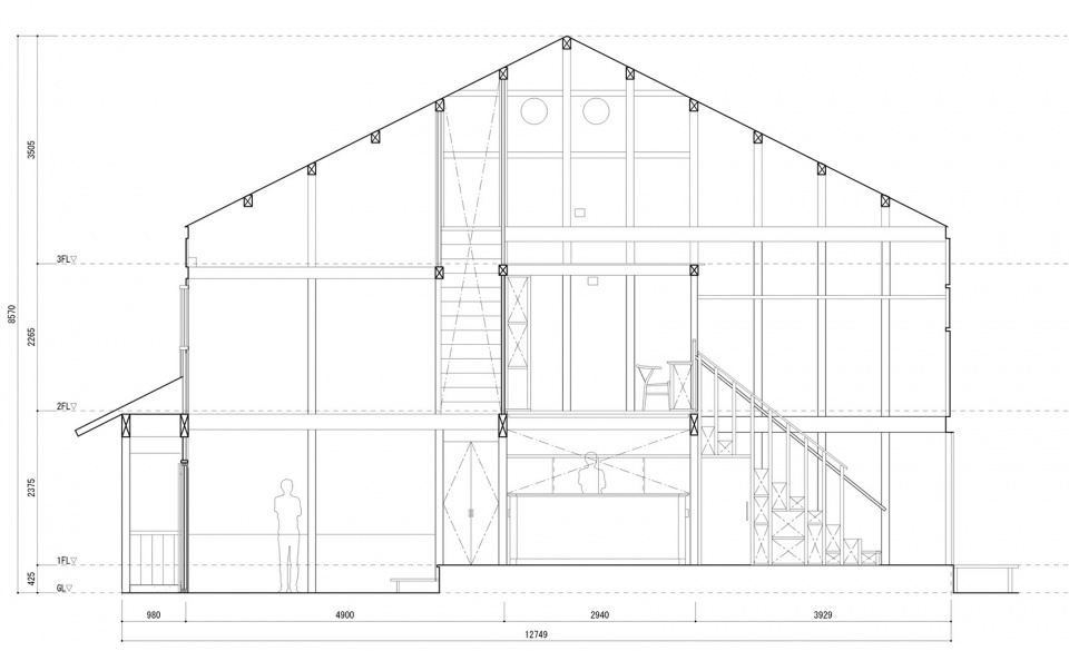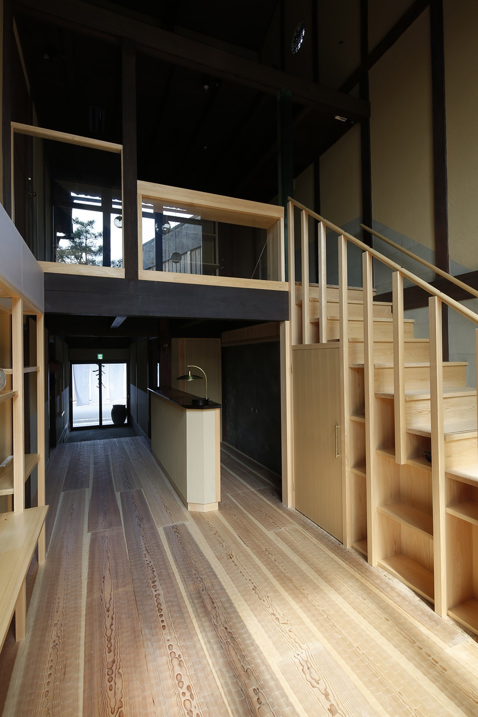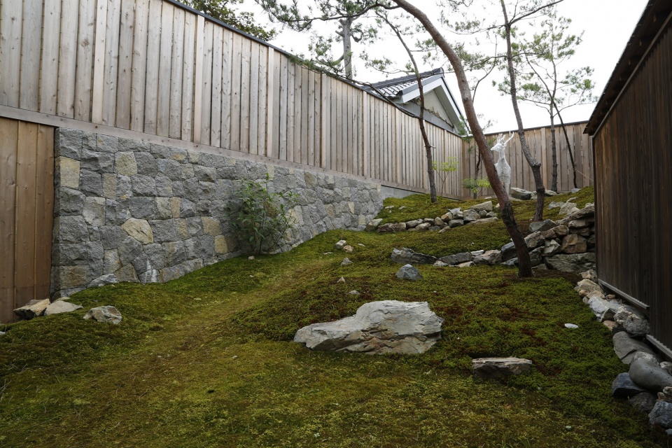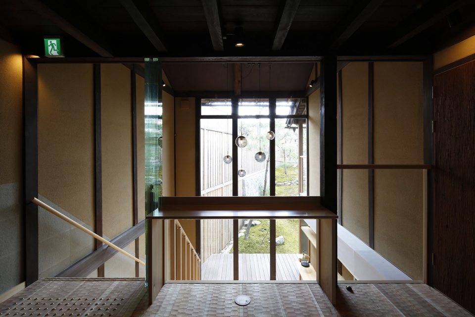 原建筑的中庭本身是为了在由良川河水泛滥时将人们疏散到阁楼而设置的,在改造过程中,建筑师保留了中庭,并将接待空间,楼梯大厅,四间客房以及一间小餐厅围绕中庭组织起来。原有的仓库部分被拆除并改造成一个大花园。