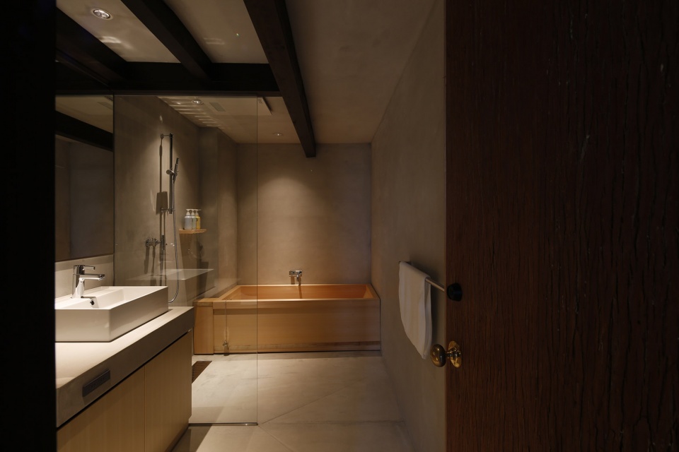 Each room was made by local craftsmen using various local materials such as lacquer and stone from Tamba, indigo dye from Fukuchiyama, handmade Japanese paper from Ayabe, and cypress wood originating from Tango.
