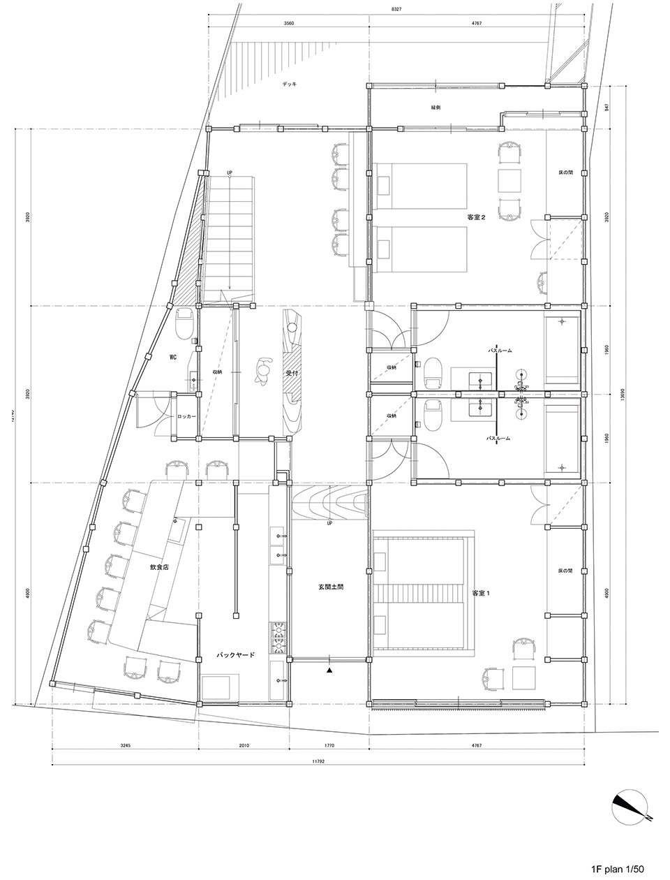 This project is a renovation of an 80 year old folk house built in a castle town founded by Akechi Mitsuhide, located in Fukuchiyama City, Kyoto. Although the client’s family has grown up in the area, the number of vacant houses has increased in recent years. The client currently runs a restaurant near the project site but was worried that the only accommodation available for visitors would be a commercialized hotel.