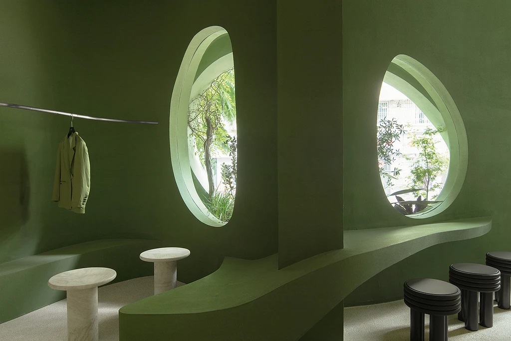 继五年以前我们第一次为耍衫设计其门店以来,这是我们第二次受委托对同一空间进行再设计。其挑战是如何耳目一新,为街坊居民以及商店的顾客提供独特的体验。近年来贴近大自然的生活体验给予我们启发,在外立面的更新设计以及整体室内设计中绿色植物被融入其中,使得即便身处于中国繁忙大都会的城市中心也能享受平静的空间氛围。