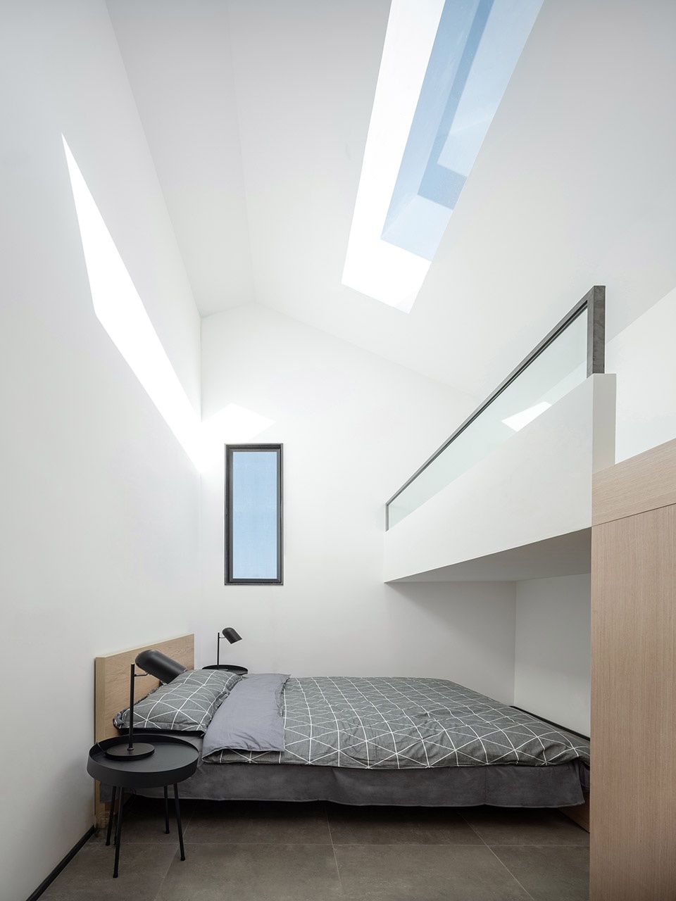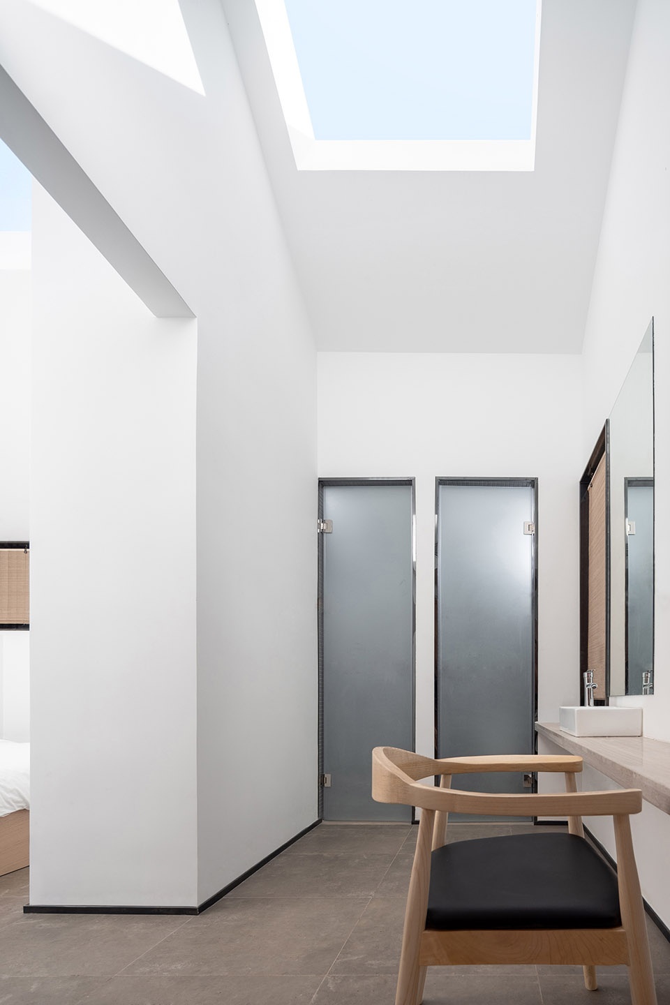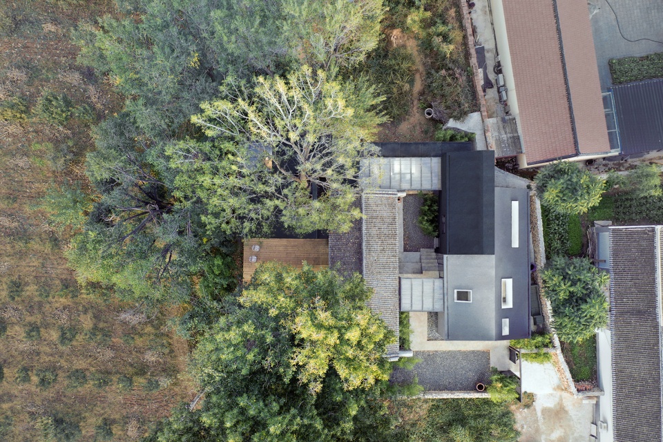 The real living space is located in the south side of old house. A gray cement house builds based on the form of old house and scale. It can open windows and skylight with different size, discretion strewn at random because of the intervention of modern structure. In terms of material, the concrete exterior wall of the main building, like the stone wall, is exposed to the audience in a “rough” form, forming the “original taste” in the modern context.