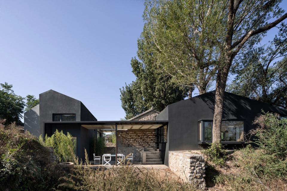 在北京市密云区巨各庄镇的张家庄村,我们以红果树、小酒馆起笔,用两个“二分半院”(1分地为0.1亩)尝试了现代建筑置入传统的方式。树下院同样是张家庄村复兴计划的一环。它位于村落的另一侧,面积较大,未来使命是一所拥有四个房间的精品客栈,可自住也可经营。我们希望尝试不同的设计语言,以差异化的设计来为张家庄村献上别具个性的审美体验。