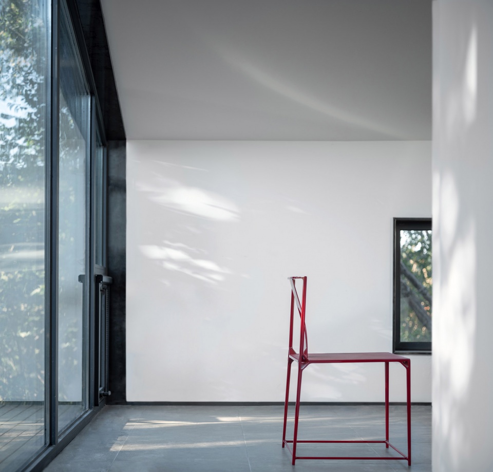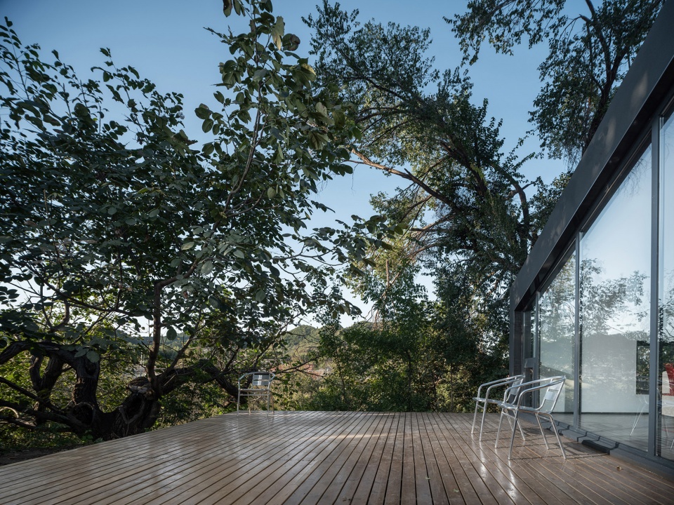 In addition to the design of the courtyard in the living room, the viewing platform in the site also gives way to the survival of the original trees, minimizing the damage to the site ecology caused by the construction. In the interior, we use a large white wall as the base, like a curtain, to project the shadow of trees onto it. This processing method responds to the cost, scale and site memory at the same time.