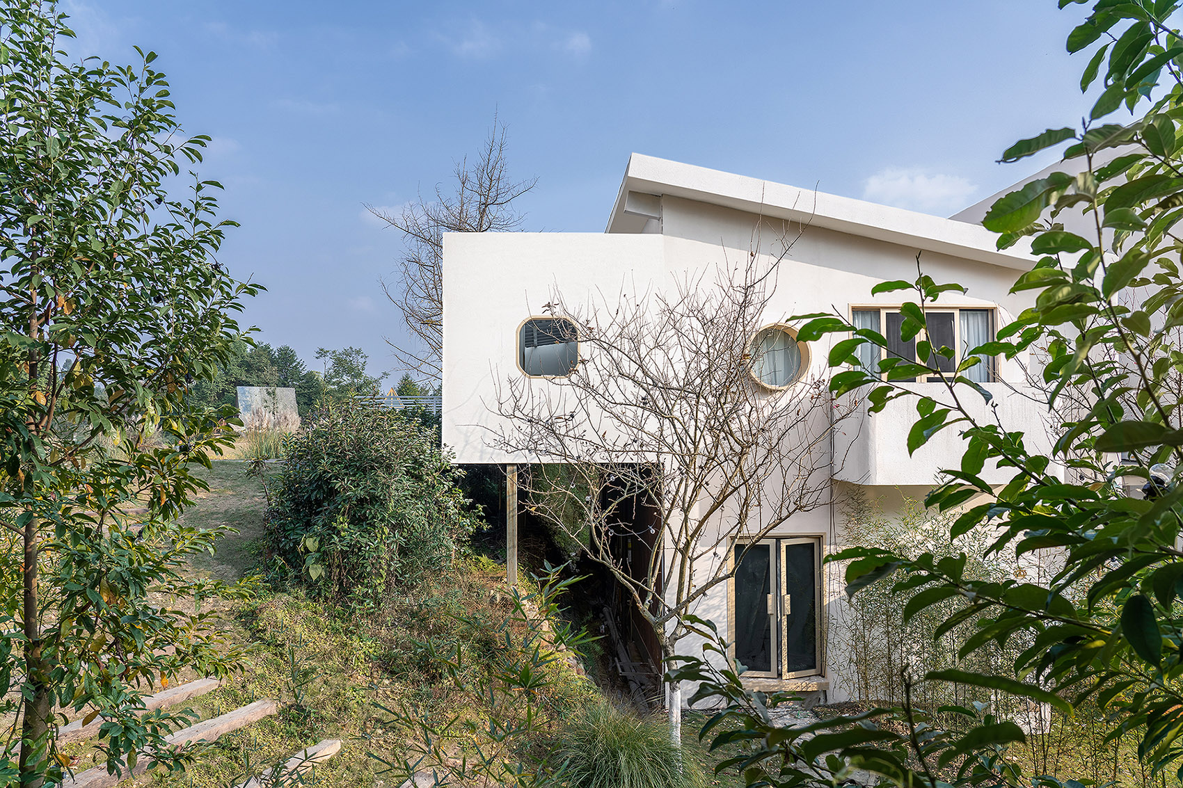 At the beginning of the design, it was intended that the floor-to-ceiling windows would be turned into doors so that when night came, guests could stand in the glass room and look at the stars, but this idea did not materialize for various reasons. The round windows on the facade play a role in framing the view when looking out from the interior, allowing a view of the distant jungle from the second floor, making the whole space warm and comfortable.