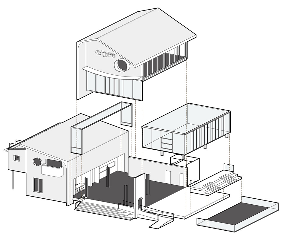 ▼外立面延续挑檐元素,retaining the overhanging eaves elements