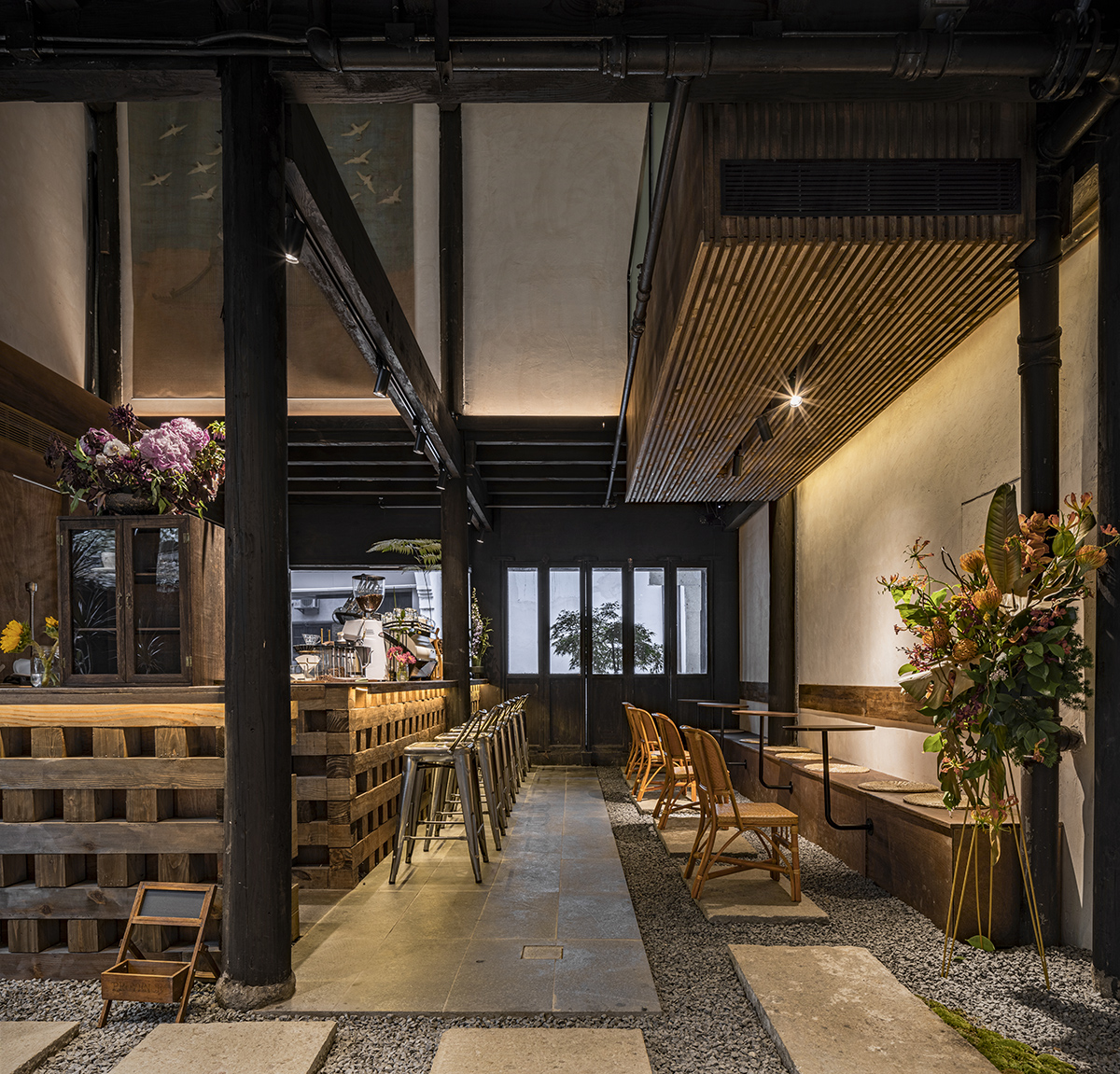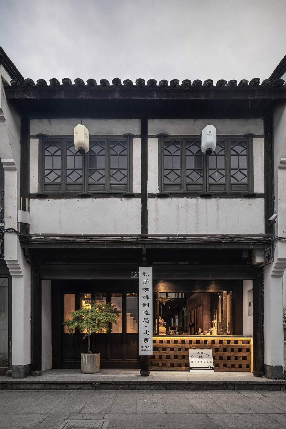 This project is located in Dajing Alley, Hangzhou City, which connects the densely crowded Zhongshan Middle Road and Hefang Street. This alley has been located in the bustling core area since it was called Wushanfang back in the Southern Song Dynasty. The store is the pilot Metal Hands coffee shop runs in Hangzhou City, which is a risky decision to the client. How to integrate this domestic specialty coffee brand from northern China into this historical City in south? It was the core challenge for the design team and the client either. Considering the preservation and integration with the historical communities. We decided to abandon the sense of modern and industry, restore the elegant and leisurely life scene of the Song Dynasty. To design a wabi-sabi boutique coffee shop in this modern and bustling commercial spot.