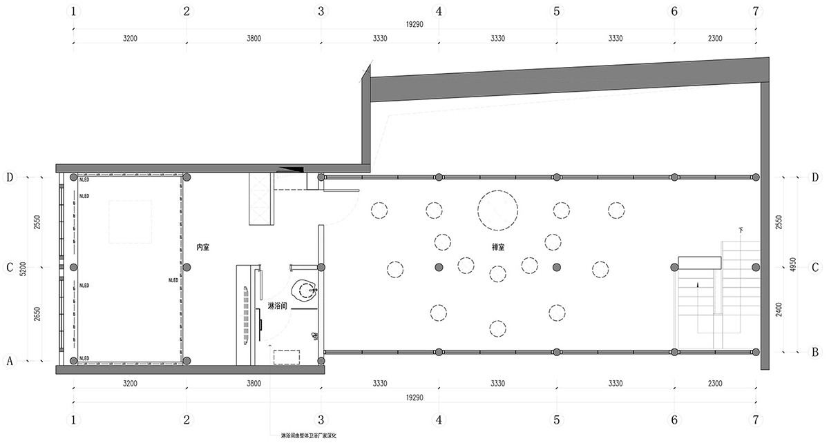 ▼将室外景色纳入空间的二层开放禅室, meditation area of second floor