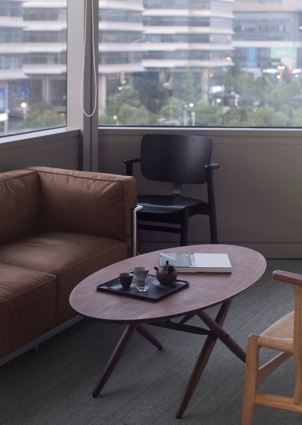 The line+ Shanghai office is located in Noah Wealth Centre in Shanghai Hongqiao Business District. As the first stop out of Hangzhou, line+ aspires to create a space that integrates corporate exhibition, academic salon and comfortable office. While expanding business in new regions, the new office space will also establish a higher-quality corporate image.