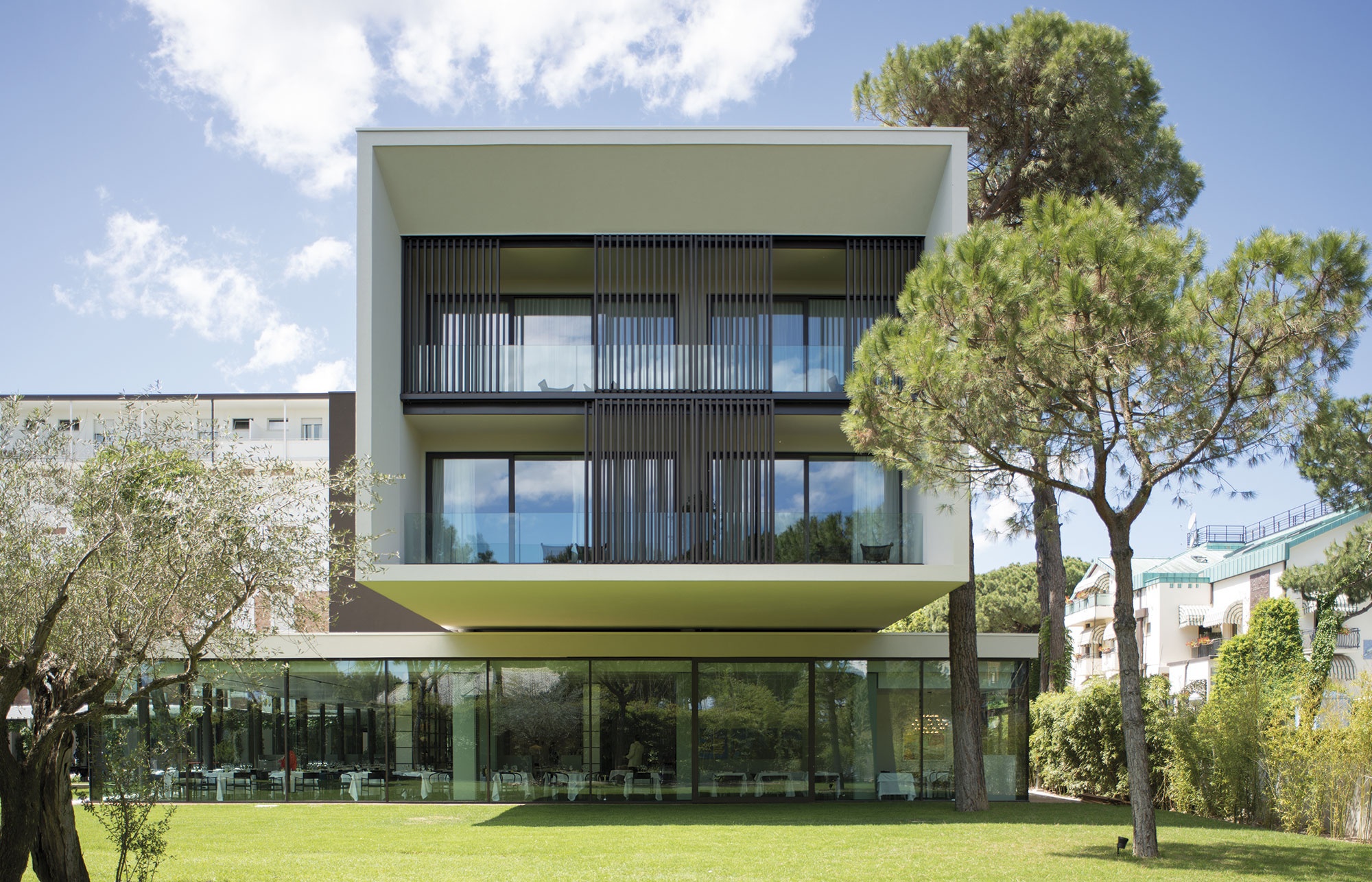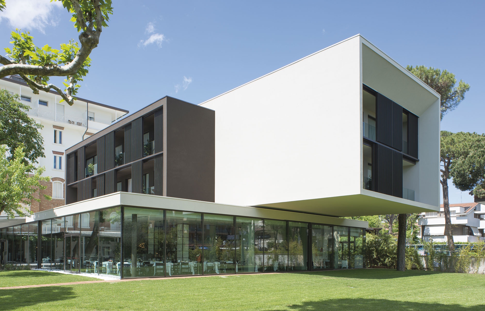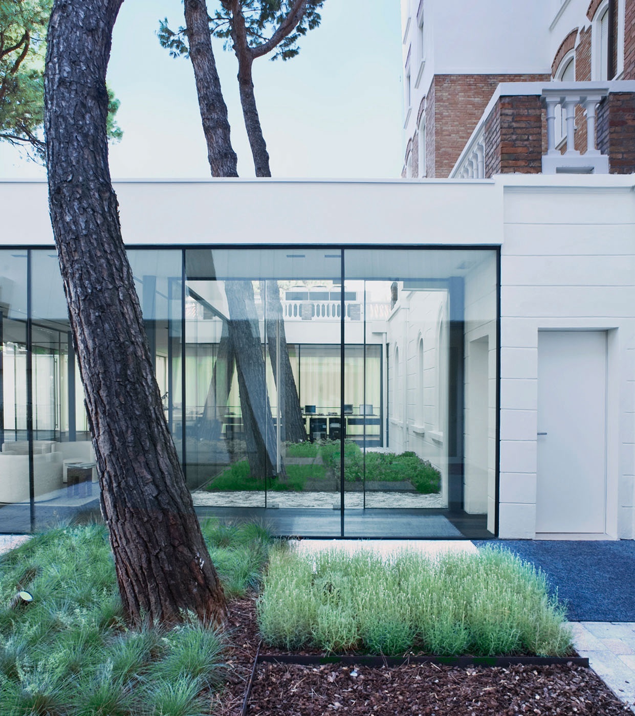 In 2012, all the public areas on the ground floor of the old building were completed: the new lobby, the cocktail bar, pastry shop, business and conversation lounges. The reception was also enlarged with a new pavilion in glass and metal enclosing an internal patio that becomes a link with the old building. 2014 saw the completion of a new three-floor edifice to supplement the main building.