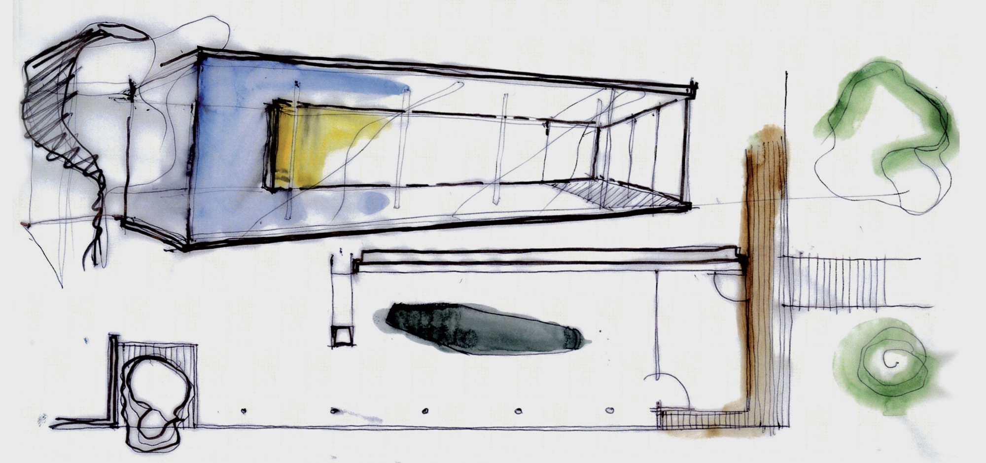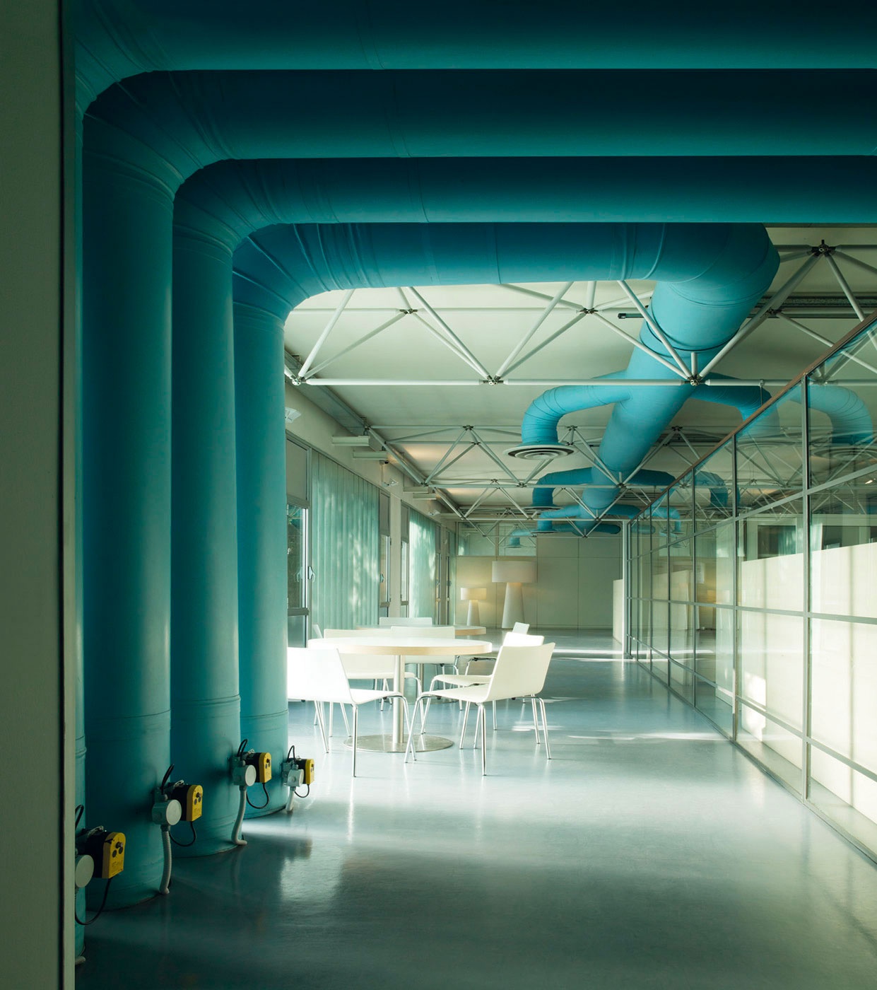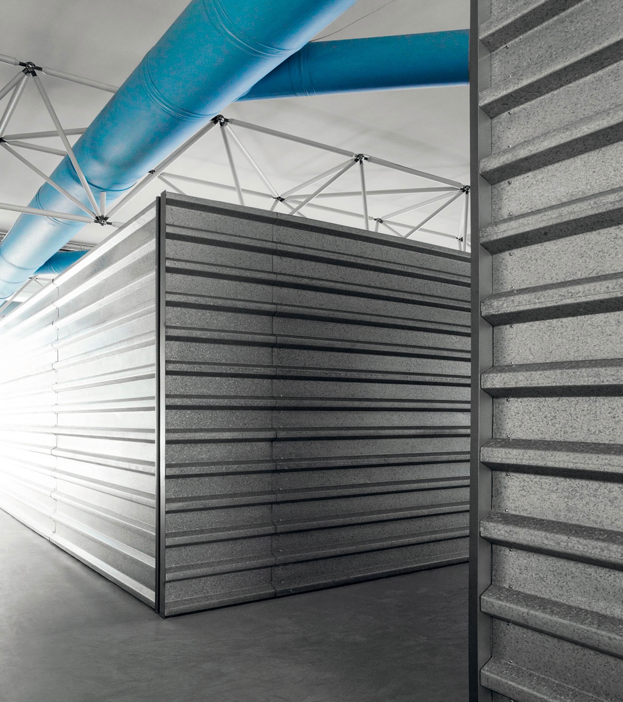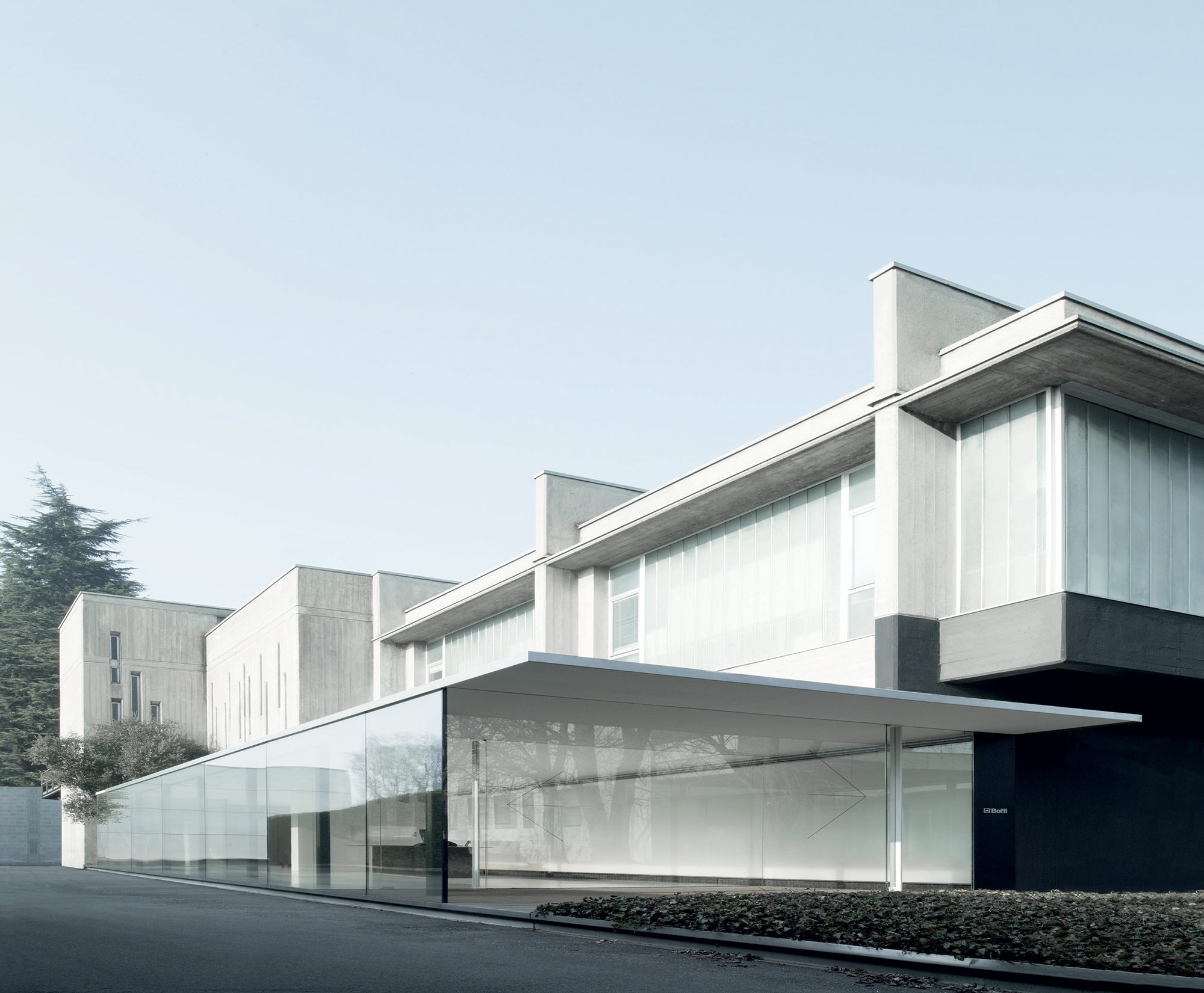 In 1999, Lissoni began working on plans to expand the existing Boffi's headquarters and plant located in the northern Italian city of Lentate sul Seveso. The main aim was to establish a paint shop, security area, warehouse and reception area. The first building phase produced the reception area, which was finished in April 2008. The glass-encased, puristic steel construction was added directly onto the old building.