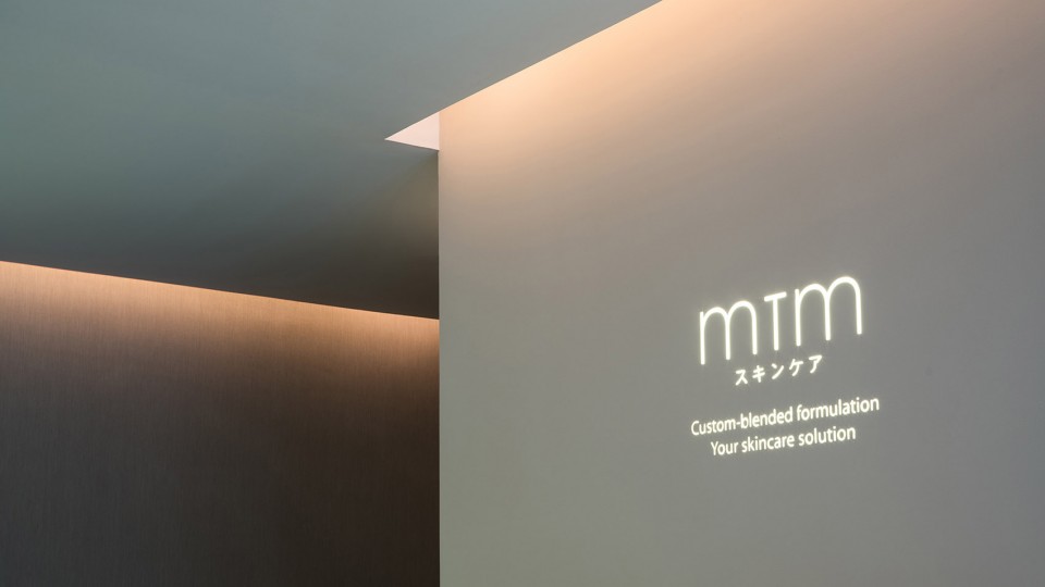 Situated in Chengdu’s Taikoo Li, the 400sqm spa has 2 main functions, a retail-orientated ground floor where customers can have their skin analysied by mtm’s consultants who can recommend custom-made skin products. On the 2nd floor is expansive treatment area where the clients can receive facial treatments and massage. As part of mtm’s China presence MDO developed a new store for the concept which highlights the scientific and bespoke nature to mtm’s service. Referring to the brand’s Japanese origins, the new palette is neutral in colour, with natural materials of stone and timber carefully detailed, and focus on space and boundaries. The two functions of retail and treatment are separated vertically. The feature stair becomes the boundary and transition space organizing public/private, fast/slow, clinical/spa. As guests climb the stair the ceiling folds over and the walls are lit by hidden uplights creating a warm and comforting environment.