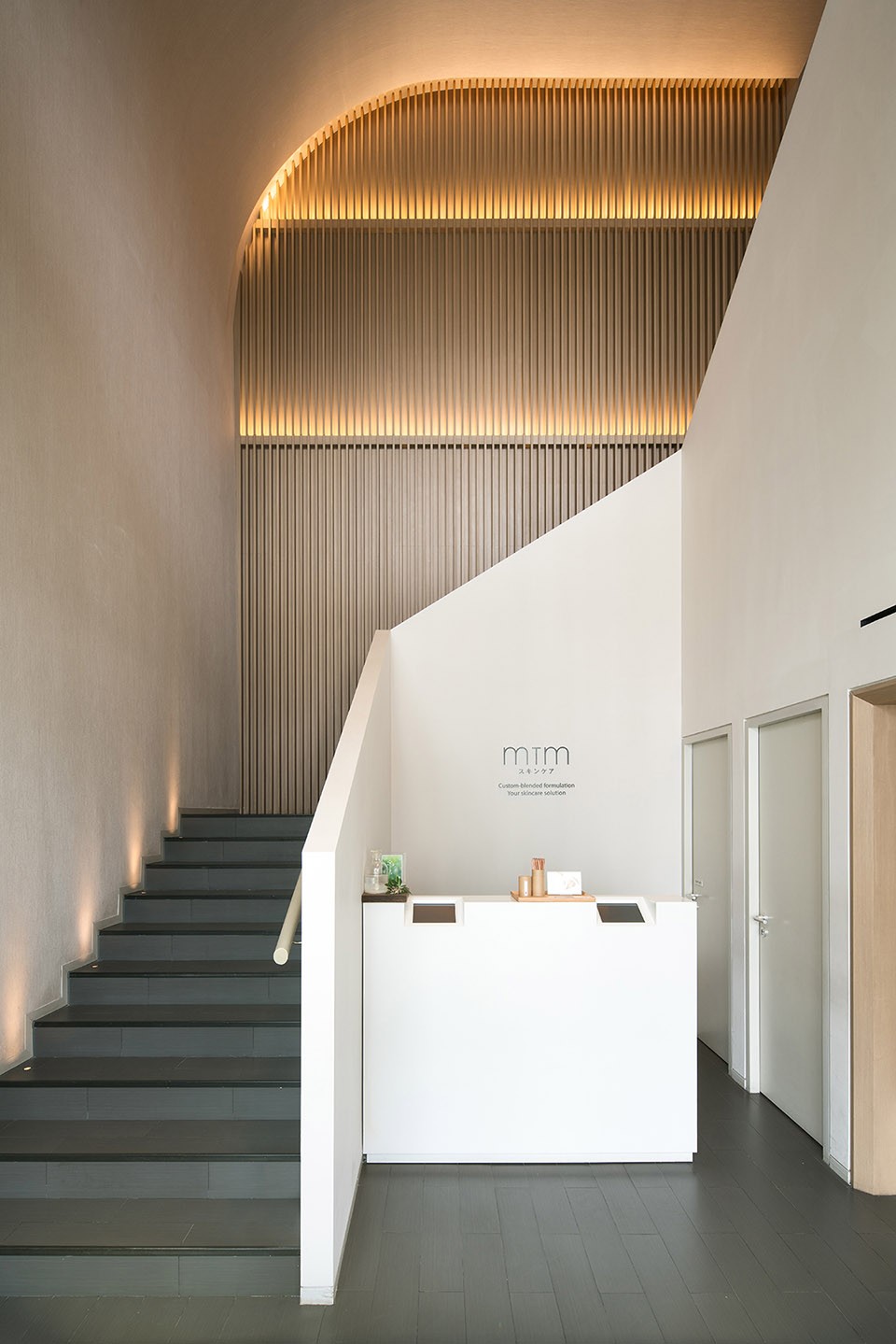 More Design Office’s new treatment spa for Hong Kong based mtm Skincare is a hidden gem accessed via a gently curving feature stair.