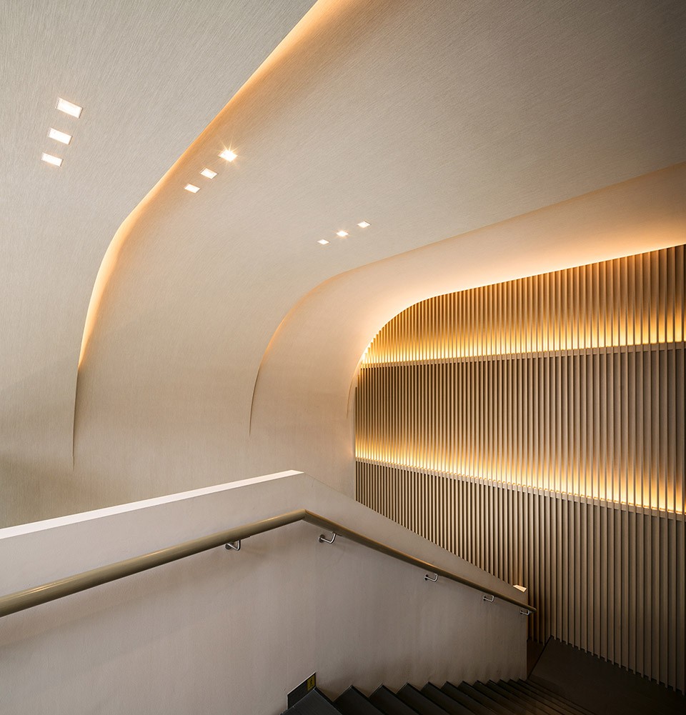 MDO所为香港护肤品牌MTM设计的全新理疗spa是一个由一座轻微弯曲的楼梯引入的隐秘宝地。