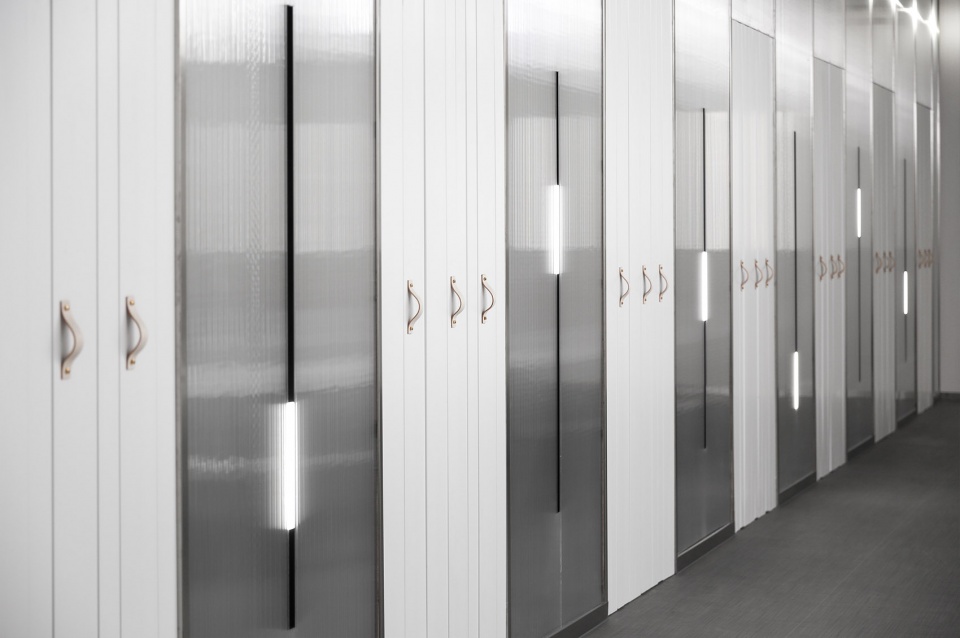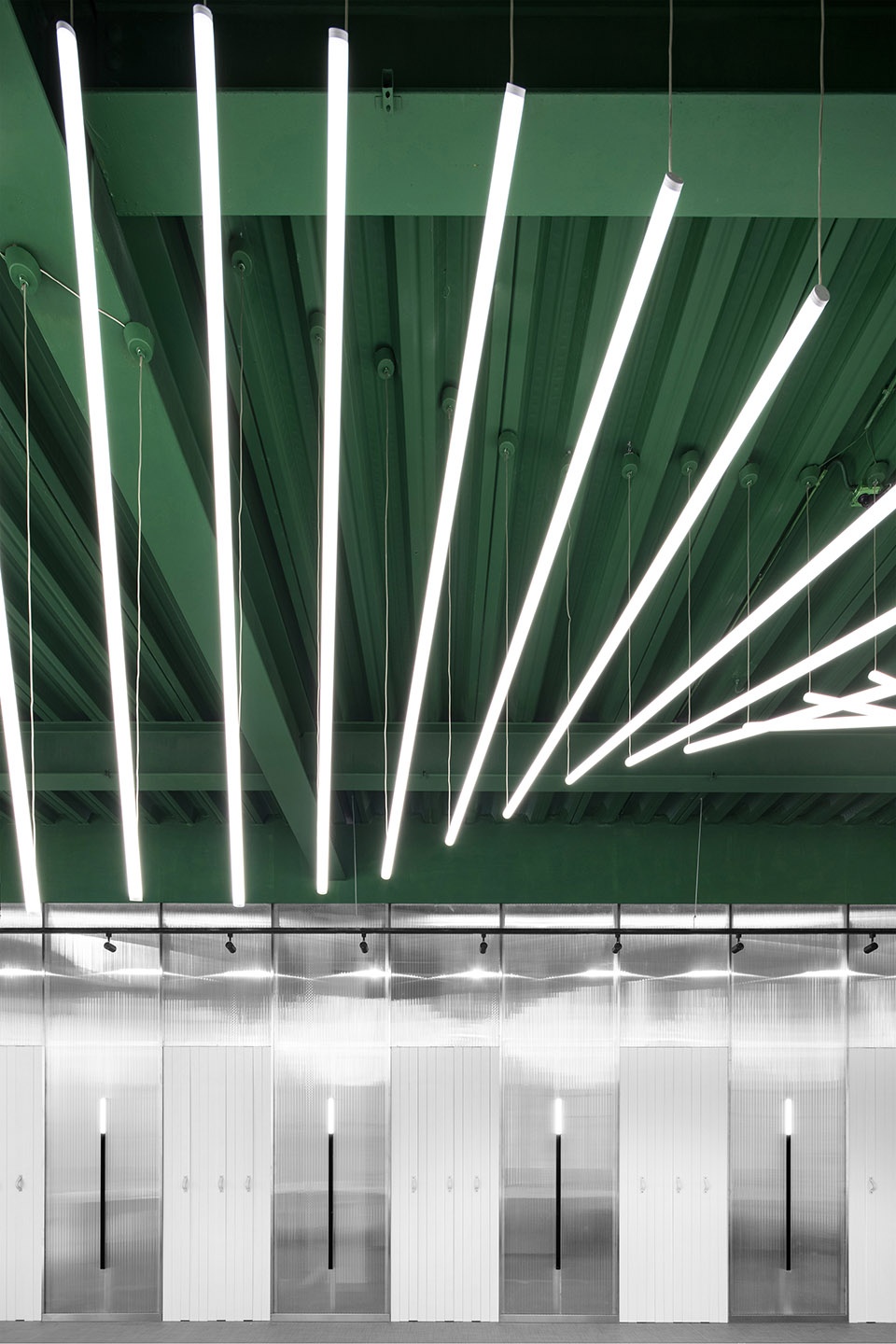 ▼写意柱廊的墙面嵌入式LED线型灯阵列,the LED Linear Lamp was embedded in the wall to recall the traditional colonnade