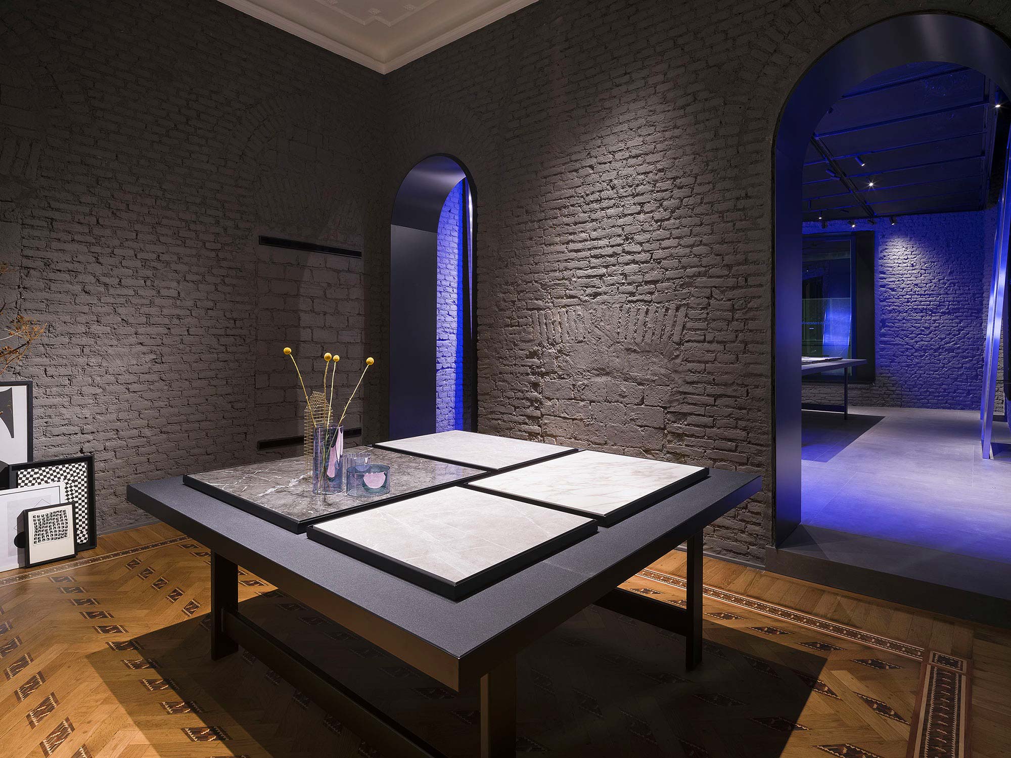 在内部,有一个接待客户的休息室,一个带有会议桌和厨房的共同工作区,所有这些都经过了重新设计,并用Atlas Concorde产品覆盖。在每个房间里,目录中的材料铺设地板,以展示其独特的特征,而内部庭院的地板则展示了户外系列的产品。涂漆的金属板将门口框起来,使裸露的墙壁上的通道开口更加均匀,更加美观。最后,还保留了一个临时展览区域,通过新项目和装置进一步活跃了空间。