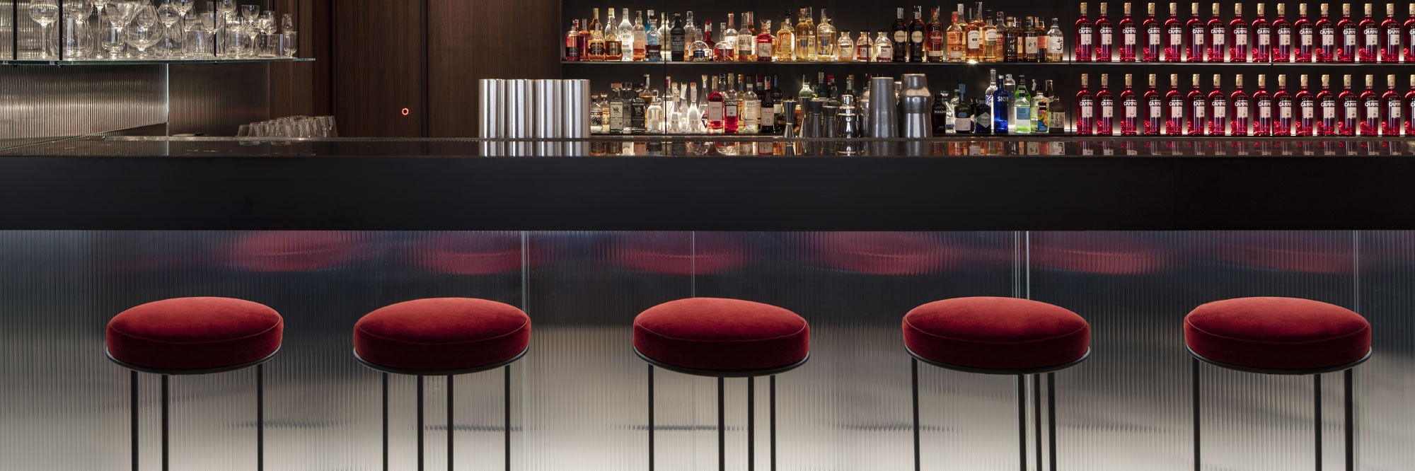 The restyling of Camparino in Galleria was carried with full regard for the history of the location in terms of its aesthetic and social significance.