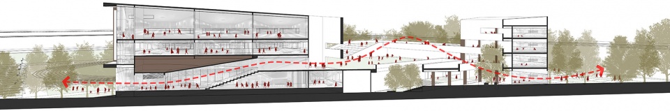 For the library and the playground,close to the urban interface,its not only easier for school to manager market ,but also can be used as the school’s external display space, To maximize the publicity of the school, the library and the playgrounds are open to the public, It can not only improve the utilization of school facilities, but also give back to the community and enhance the interaction between childern and parents.