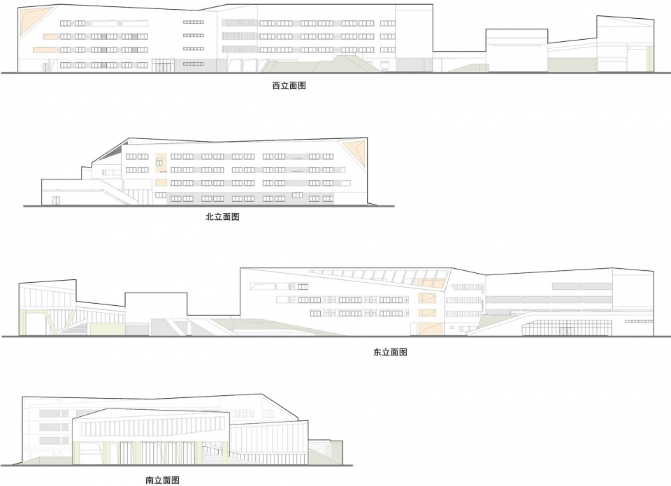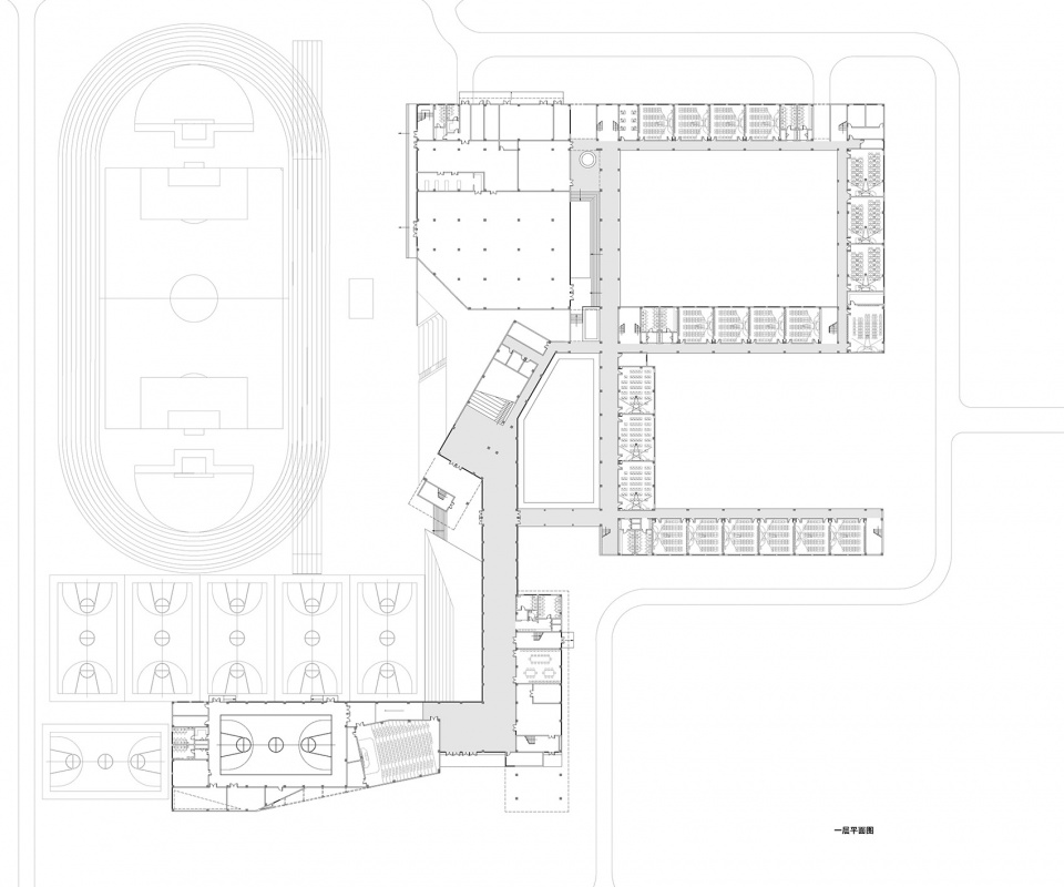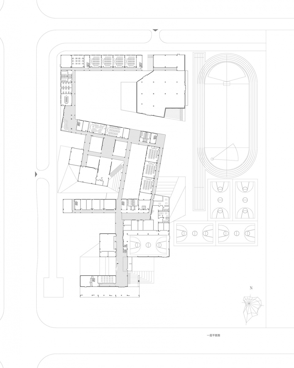 In the senior school design, we open the front filed to make it become one part of city square. As a “buffer space ” for social life and school community.the function of front field of campus changes also eliminates the boundary between inside and outside, and give the possibility for the school and community to makes the interaction.