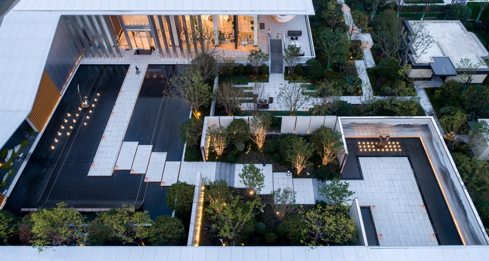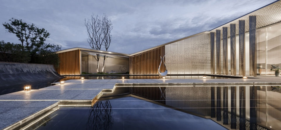 The combination of architectural form, language and regional context takes the natural outline of Hangzhou Xizhao Mountain and the mountain flap on the roof of the sales office connects the buildings in series into a whole. The treatment of partial air penetration makes the architectural landscape blend with each other. Through the form of grille, the light and shadow can be changed to create a light and transparent feeling and create a comfortable and comfortable space.