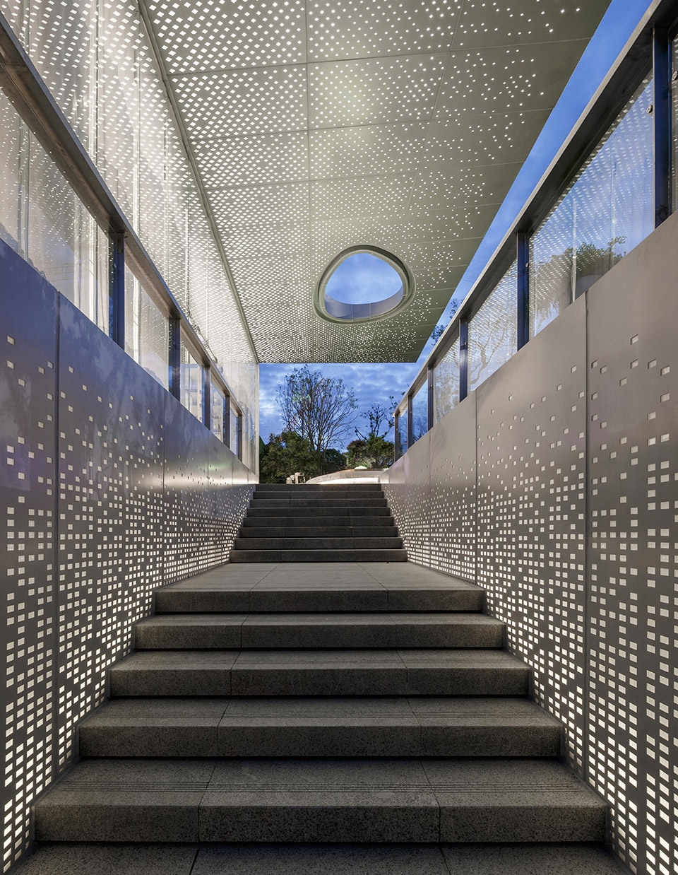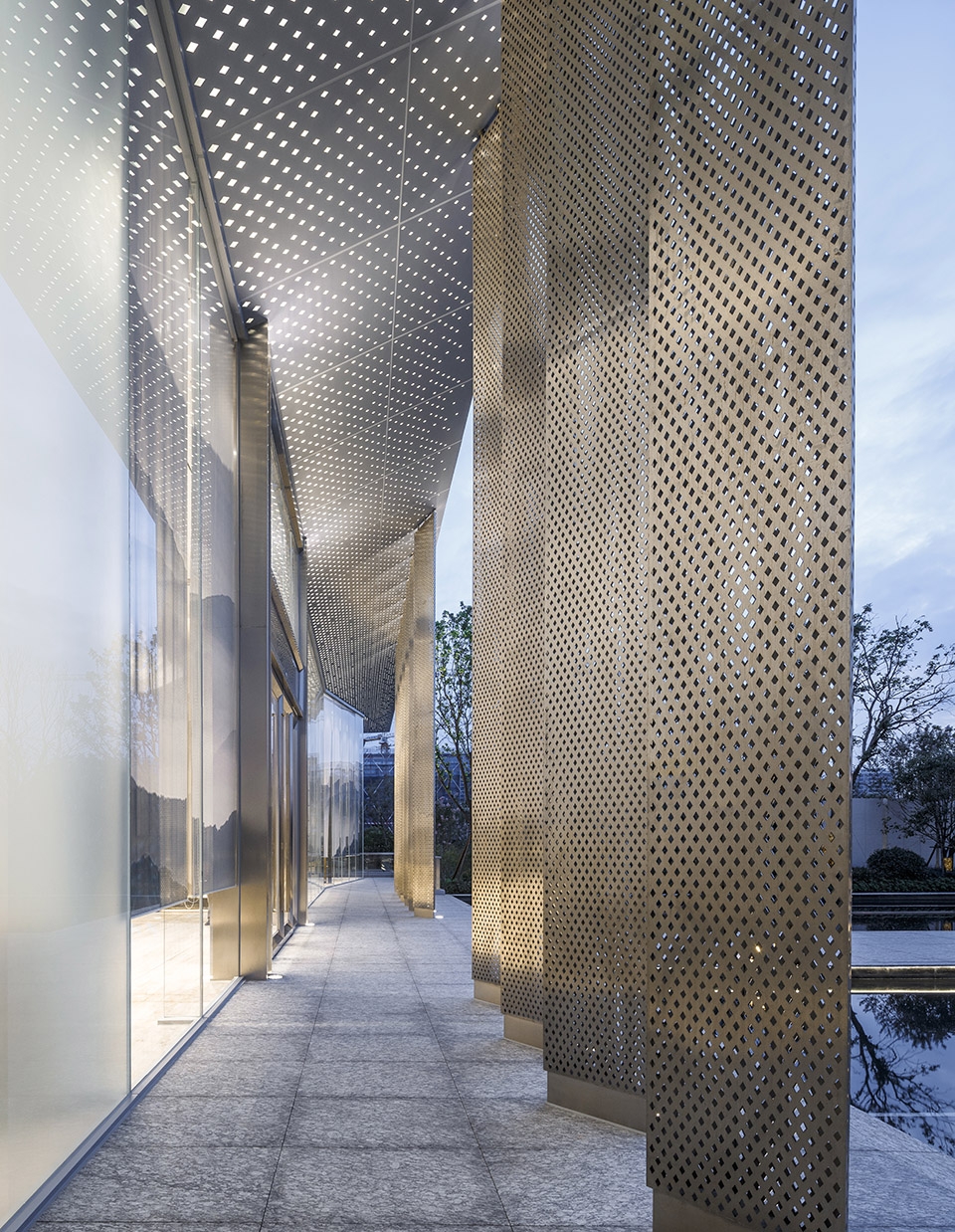 ▼穿孔金属板营造独特的光影效果,unique light shadow effects created by the perforated panels