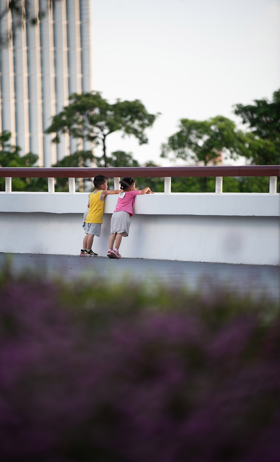 Bridges are a kind of bond. The pedestrian bridge on the north bank of Haixin Bridge, together with the Pearl River, Canton Tower, and Haixinsha Flower Bridge, contributes to charming scenery full of Guangzhou flavor. At the same time, a new urban culture and sense of pride and belonging will be generated, creating a new shared memory among the people. People from all over the world come here to enjoy the beautiful flowers of Haixinsha as well as the gentle breeze on the Pearl River. They convey the city’s inclusiveness and openness to each and every visitor, instilling within them a shared memory of this city.