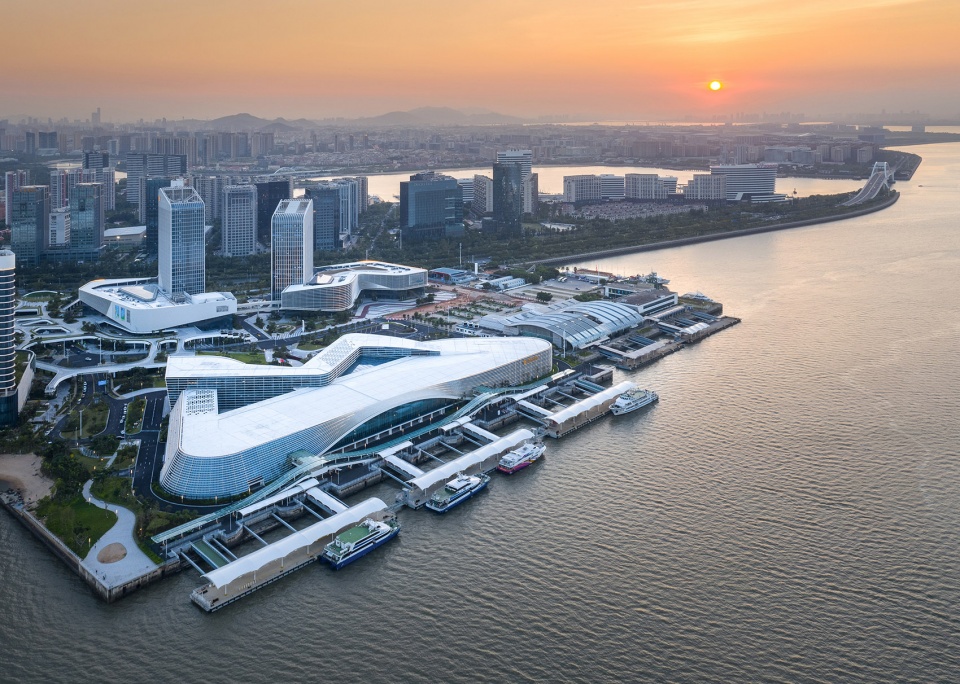 ▼客运码头仿佛海边的浪花,the ferry terminal is like a piece of white spray that hit the shore