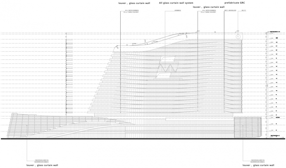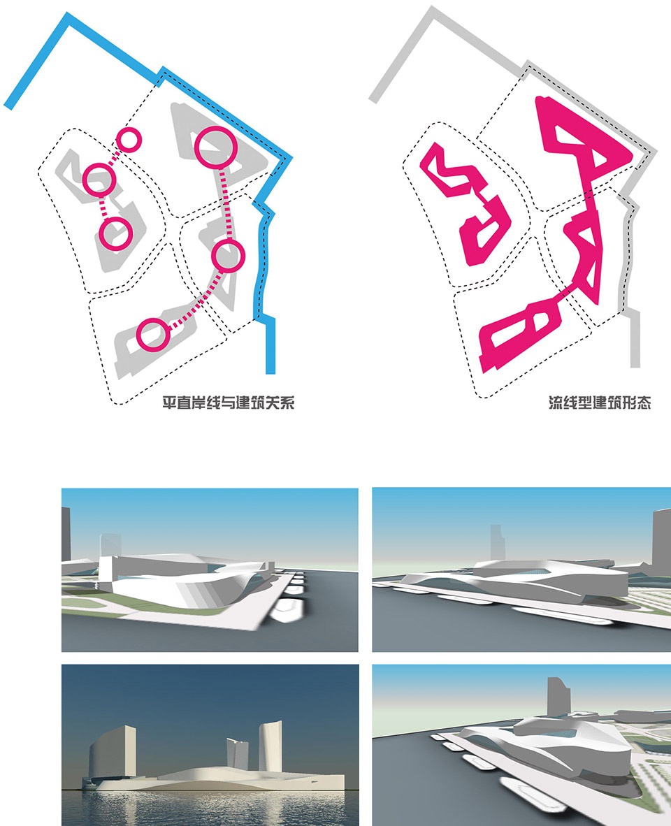 The architectural form is similar to the sculpture of huge scale from the characteristics of three-dimensional modeling, which reshapes the passion and surging of the coastline and creates the constantly changing spatial effect for the urban arterial road. From the above ideas, we set the following architectural design objectives as the core concept of the whole project: