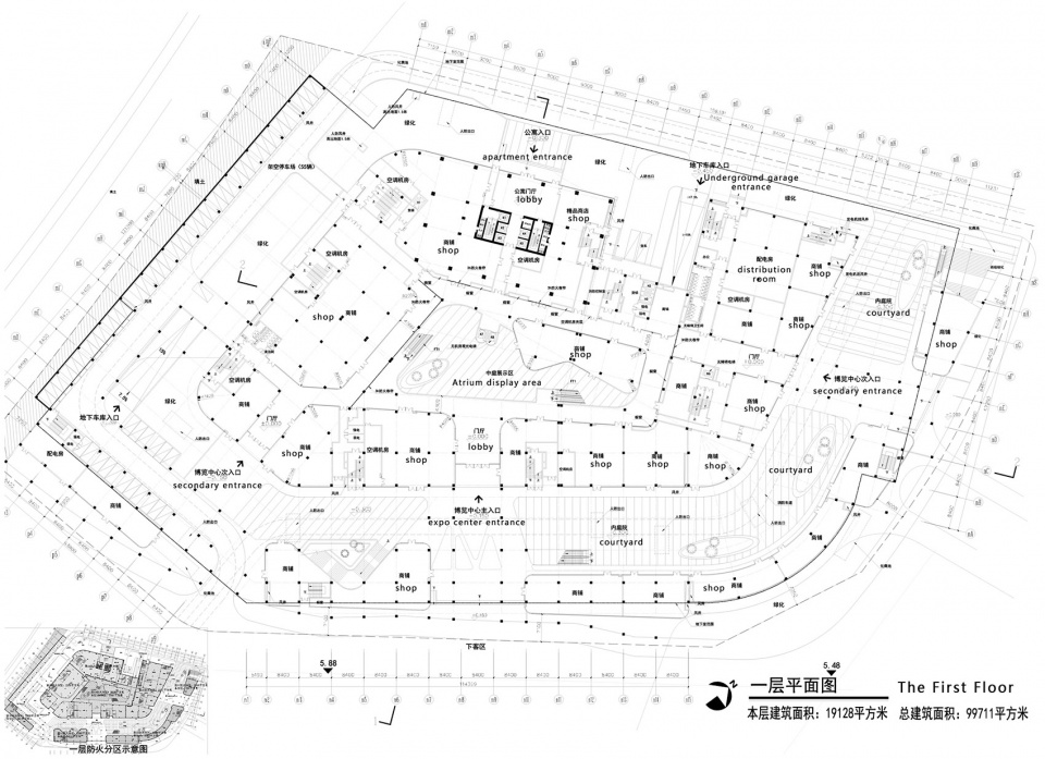 ▼博览中心一层平面图,first floor plan of the tourism expo center