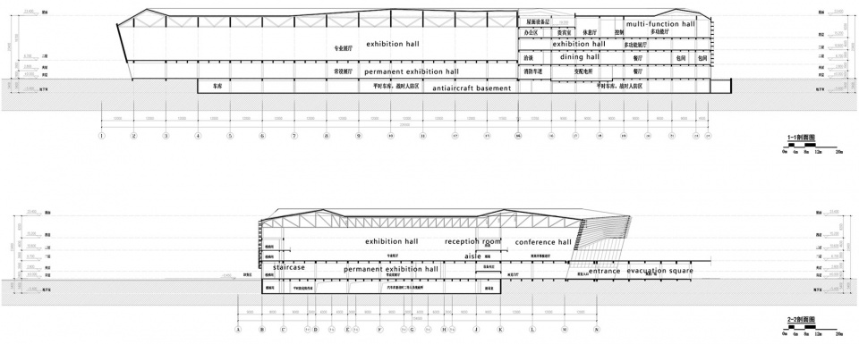 ▼会展中心剖面图,sections of the conference exhibition center