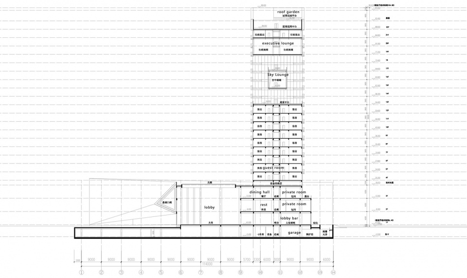 ▼酒店标准层平面图,typical floor plan of the hotel