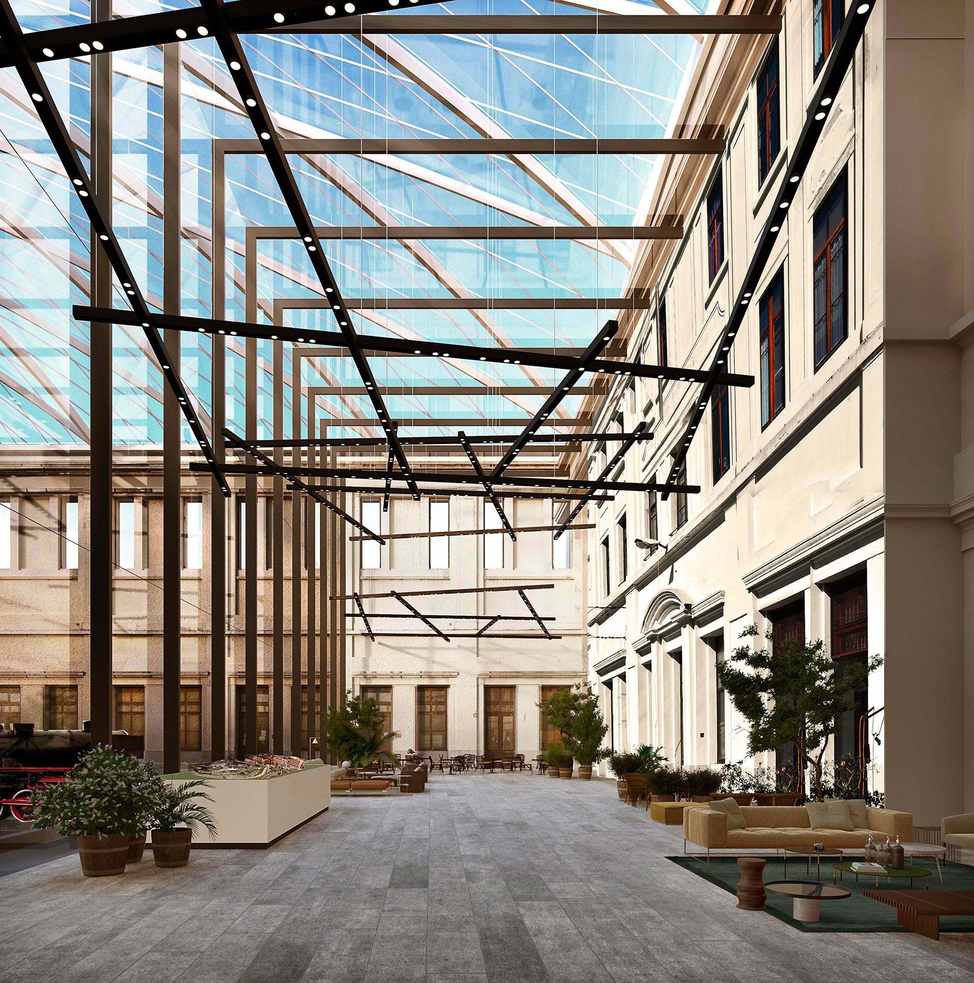 In addition to designing spaces for the permanent collection, the concept envisages a series of other facilities to complete this cultural and recreational space: an area for temporary exhibitions, a multi-purpose room hall, a study room, a themed bookshop, a model store, a document archive and a train and tram tourism agency to promote the revival of abandoned railway lines. There is also an old-style Triestian café, a train carriage with refreshment facilities, a skybar and a small hotel inspired by the world of railways.