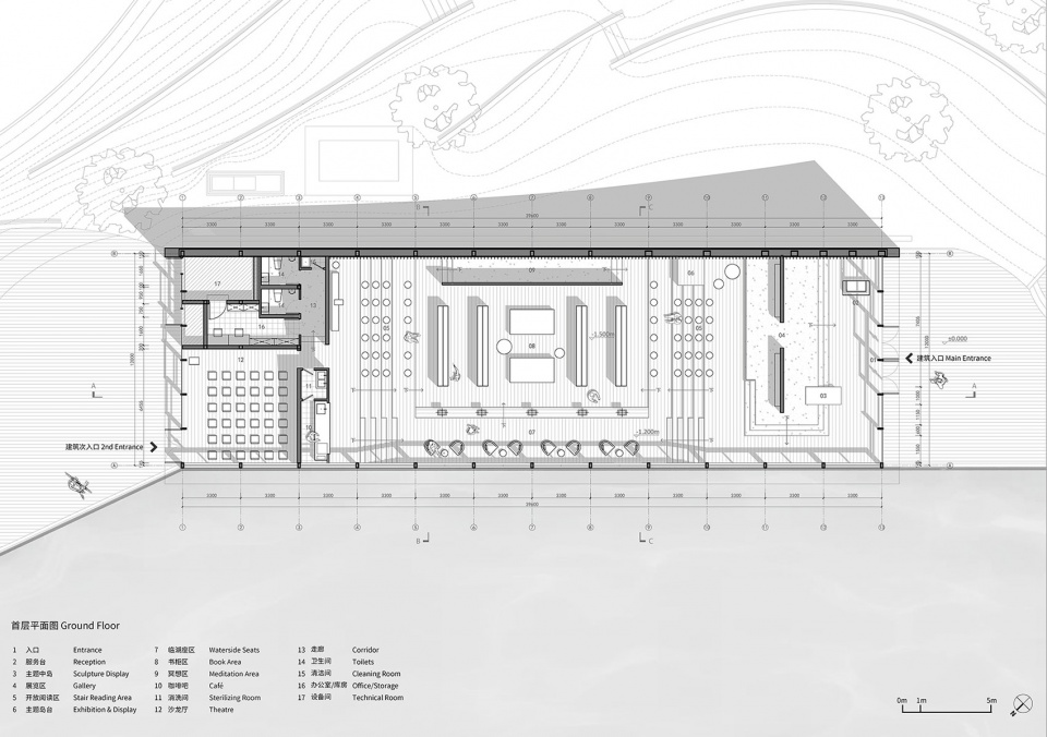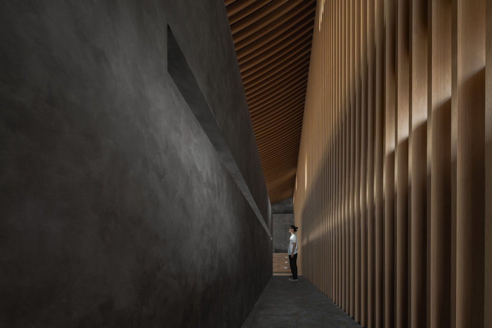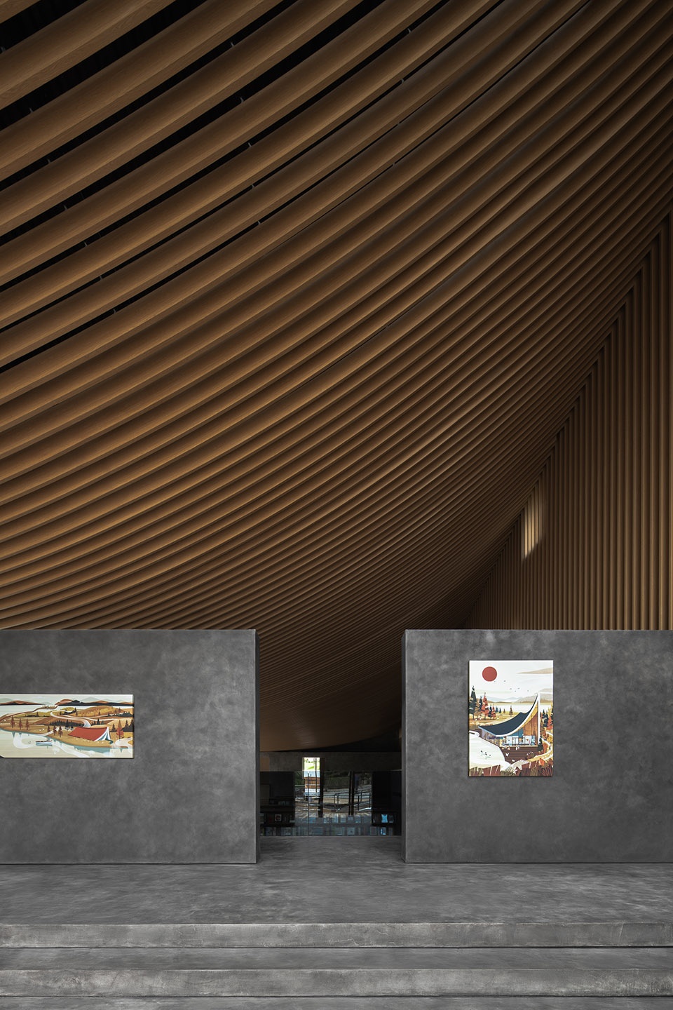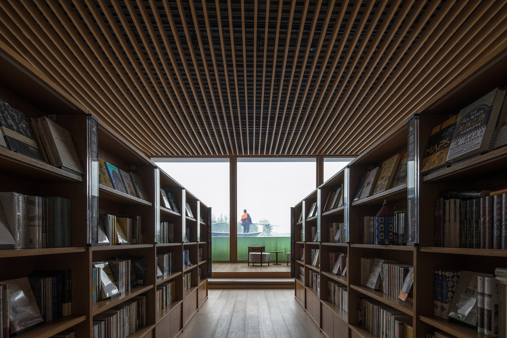 MUDA-Architects uses architectural language to propose the relationship between man and books, man and nature, and man and space. Within this building, mountains, lake and things are equivalent to people, we regain interest to each other while forgetting ourselves; within this building, people are awaken to face their true self, and to repair the degraded senses.