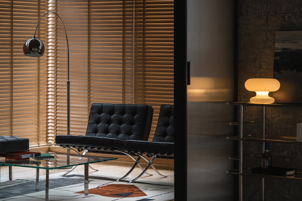 至繁归于至简,材料设计与功能设计,感性与理性的和谐统一,温暖、纯粹、宁静的氛围基调得以彰显。当夜幕来临,环境光的冷色与室内的暖色自然过渡衔接,半透明的木百叶窗帘使得空间节奏变得不确定,变得暧昧,空间的诗意在此刻显露无疑。