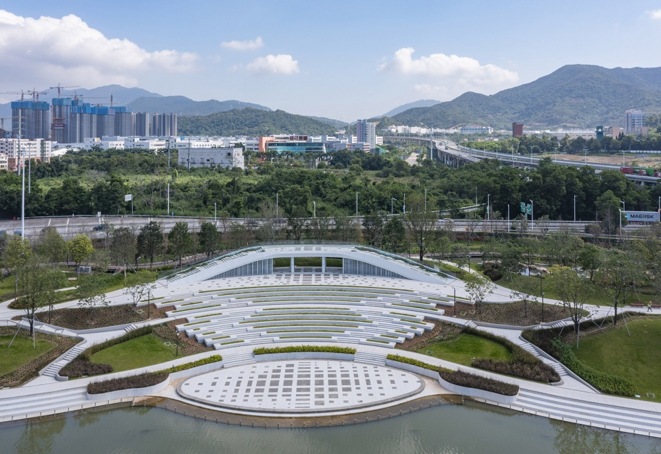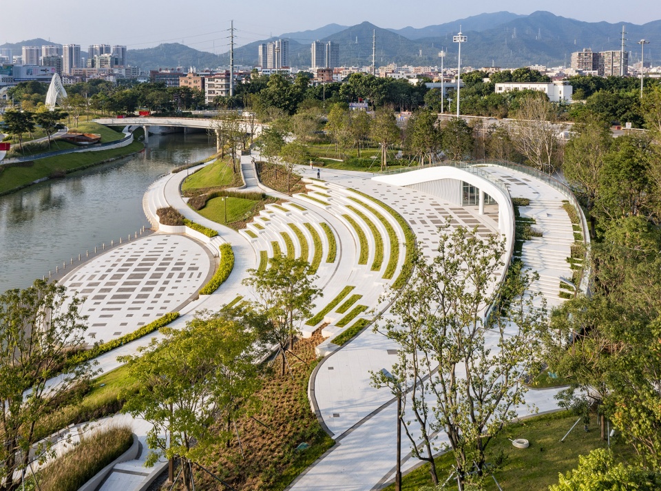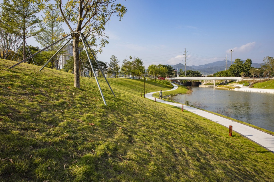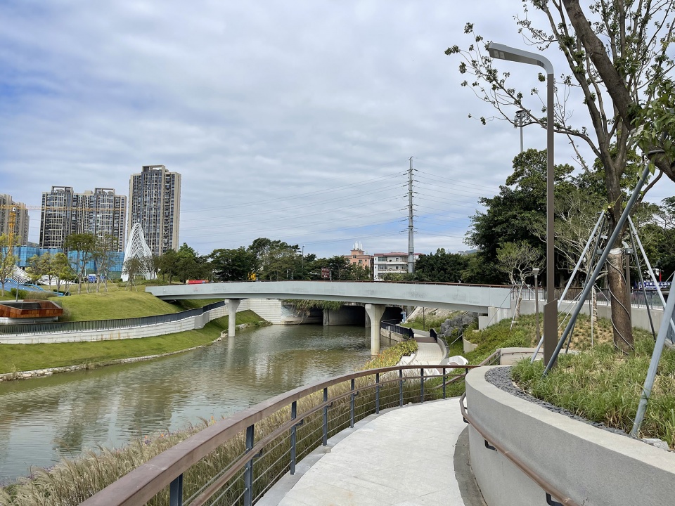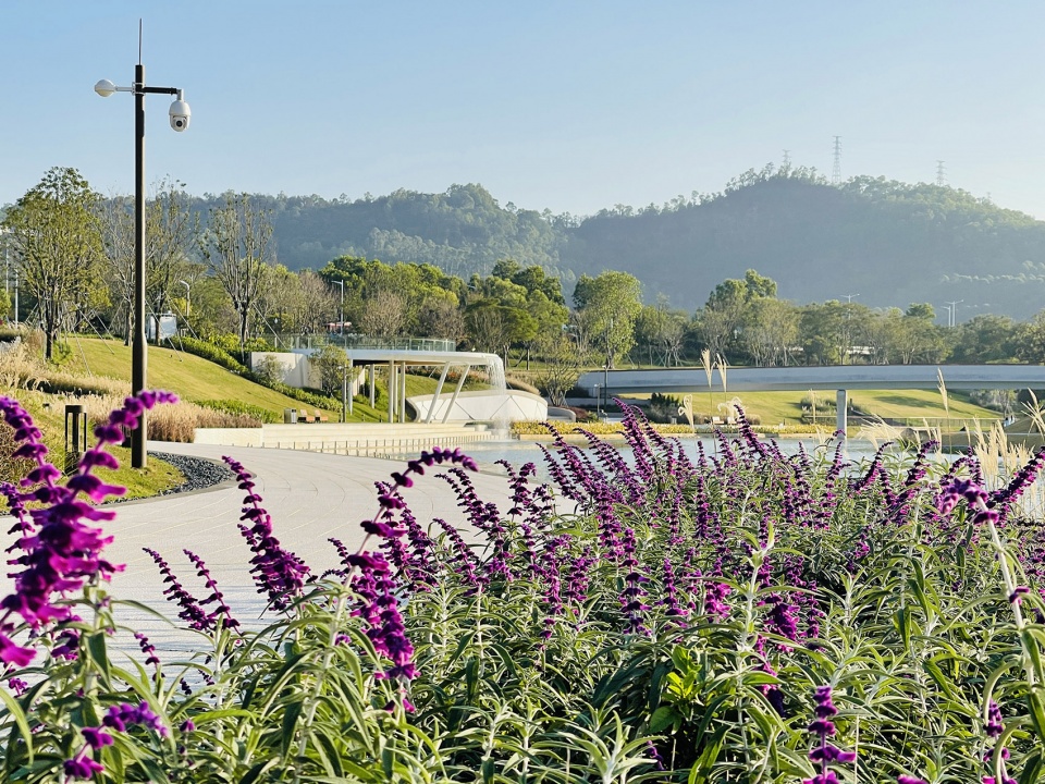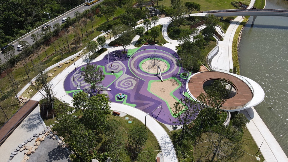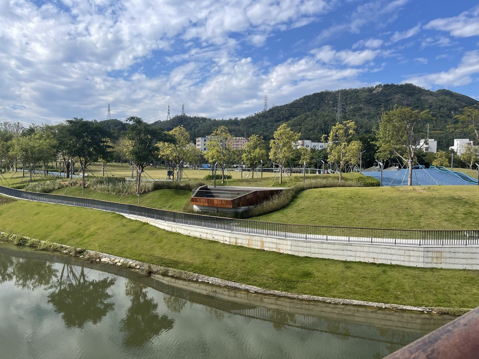 The core section of the green corridor takes the “heroic Dongjiang column” as the cultural theme. The longitudinal length of the river is 400m, and the transverse span of the river is 160m, including 63500 square meters of land and 10000 square meters of water. The urban green space on the expressway side released to improve the safety of river flood discharge in this area is adjacent to the planned Dapeng Sports Center in the East, sanxihe ecological belt in the north and Yanghe ecological belt in the West. It is the urban living room of Dapeng new area and the concentrated embodiment of the characteristics of mountain and sea cities.