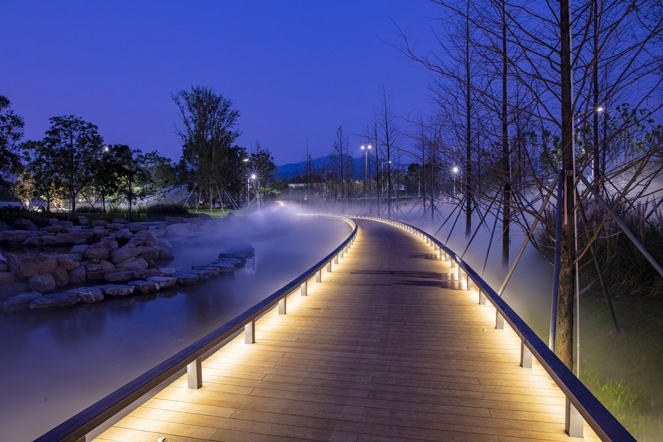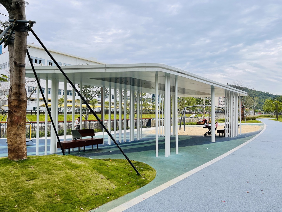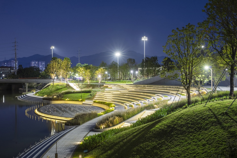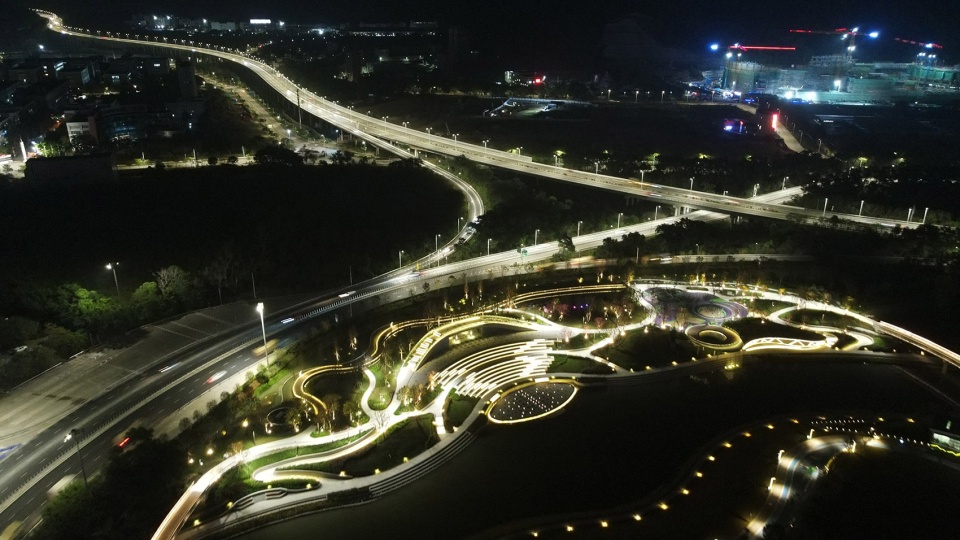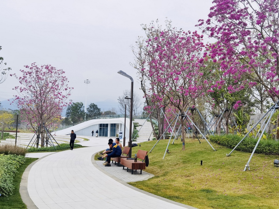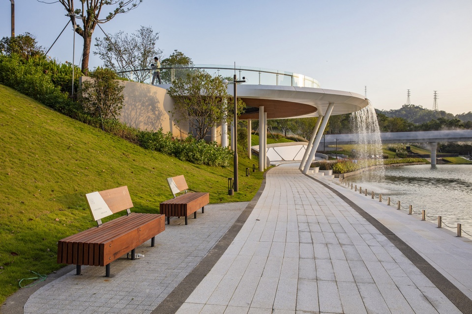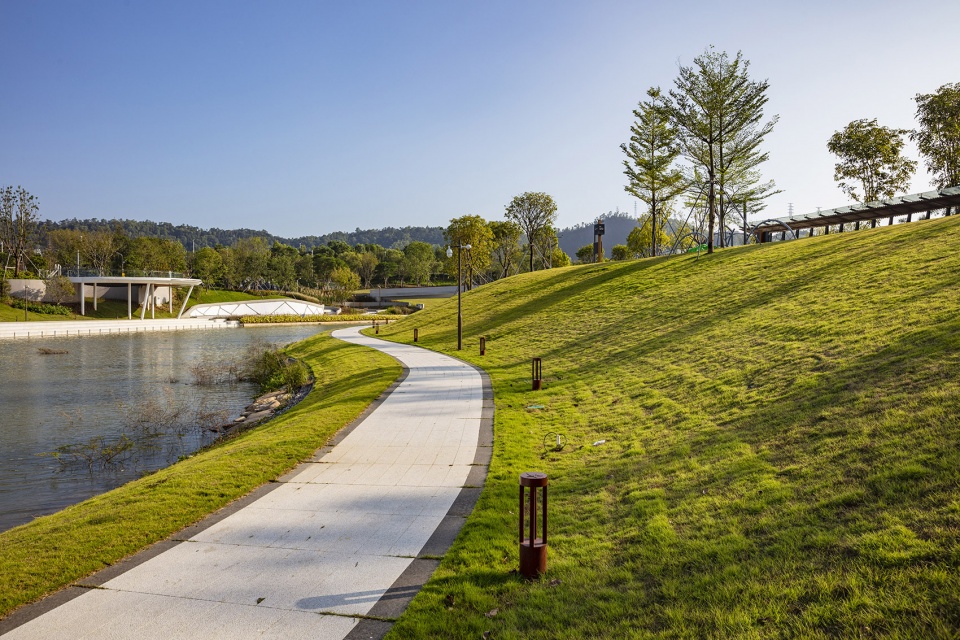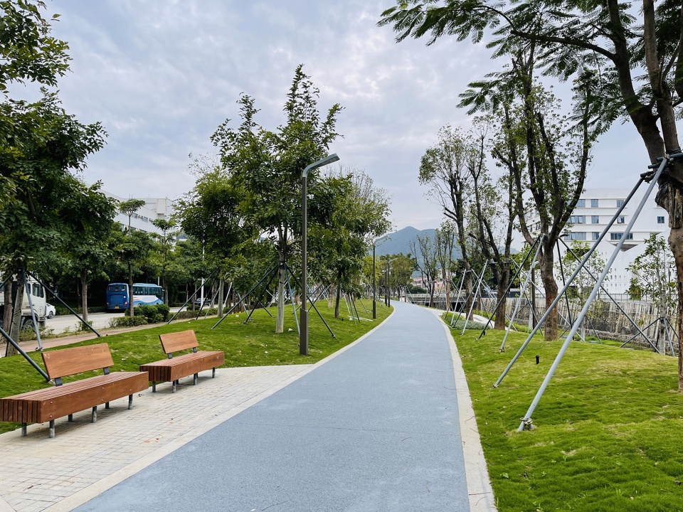 The core section of the green corridor takes the “heroic Dongjiang column” as the cultural theme. The longitudinal length of the river is 400m, and the transverse span of the river is 160m, including 63500 square meters of land and 10000 square meters of water. The urban green space on the expressway side released to improve the safety of river flood discharge in this area is adjacent to the planned Dapeng Sports Center in the East, sanxihe ecological belt in the north and Yanghe ecological belt in the West. It is the urban living room of Dapeng new area and the concentrated embodiment of the characteristics of mountain and sea cities.