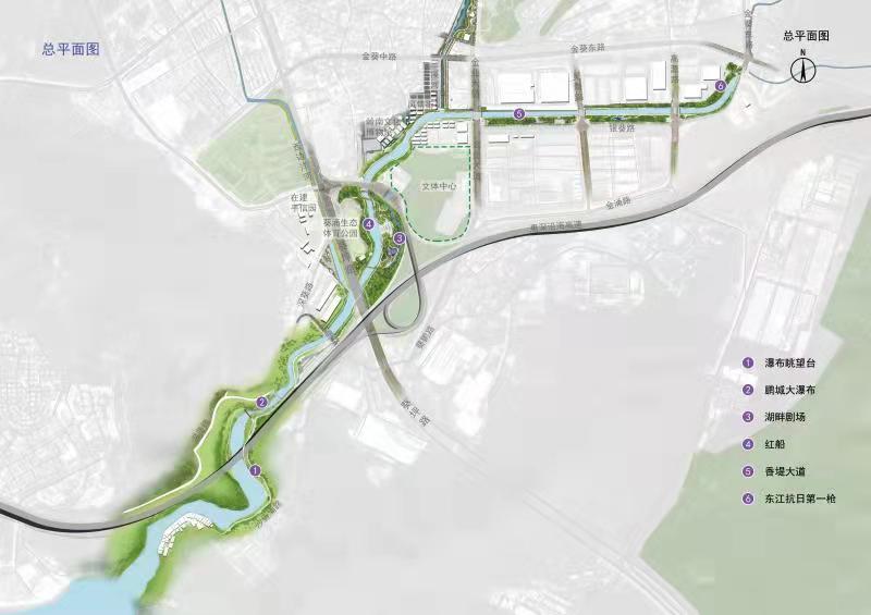 The upper reaches of Kwai Chung River originate from Luowutian reservoir and Baguang Jingxin reservoir in series. It is the birthplace of the red revolution in Dapeng Peninsula. The river flows through the central area of Kwai Chung to Shayu gushing out of Haikou. It is an important base in revolutionary history such as the successful northward withdrawal of Dongjiang column. The project planning takes “Canyon cloud bay” as the design theme, and wins with Canyon, shoal, waterfall and winding water. Taking “Dongzong family letter” as the story line, combined with water and context, integrate urban life into “Canyon cloud bay”. The first shot of Dongjiang’s Anti Japanese War, the heroic Dongjiang column and the successful northern withdrawal through the mountains and rivers on both sides of the river are engraved in the memory of the river.