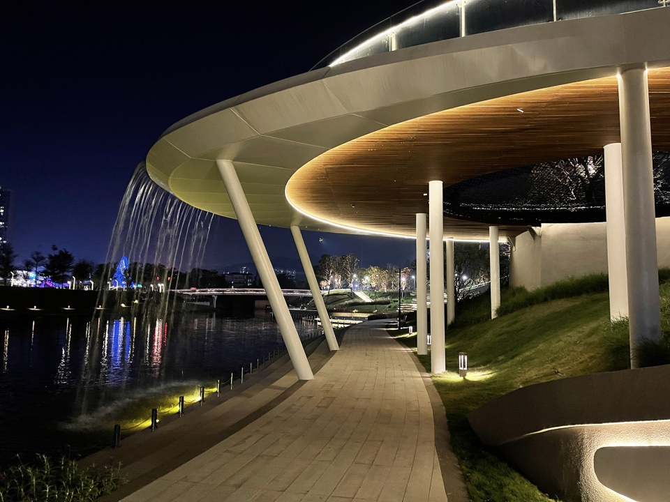 Through the gentle slope of the river and the setting of air shield dam, the hydrophilicity of the river and the landscape effect of the great lake are increased, and the red revolution story of “heroic Dongjiang column” is transmitted. Set up a lakeside theater to interpret history and culture, climb the double-layer corridor and feel the red atmosphere of the river. The meritorious bridge and kuixiang bridge restore the historical course of the Dongjiang column in that year, and stand on the red boat platform to feel the red charm.