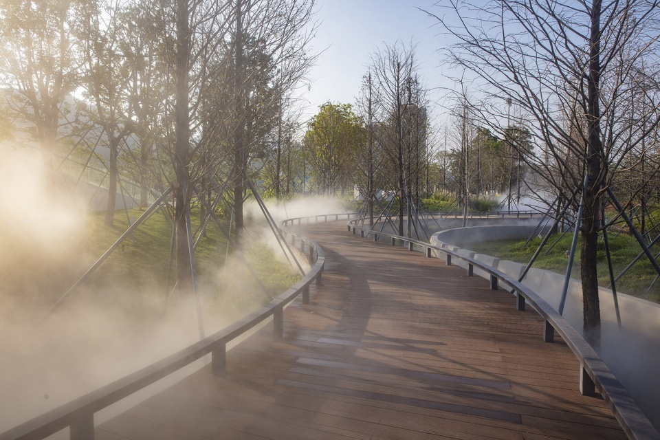 Connecting nature and livability, walking along the waterfront trail, passing through the rockery and falling water, we came to the full-age children’s paradise. Here, natural materials such as sand, logs and low-carbon popular science gather with each other. The connected slow line connects the public space of the city. Cycling and jogging has become a new trend, and people began to enjoy the fun of sports life. The entrance square guides the passing people into the next surprise. Through the above nodes, the area is connected in series to form an 800 meter closed circular leisure ecological belt, which closely connects the functions of the surrounding cities.