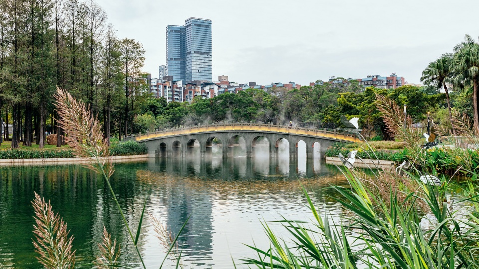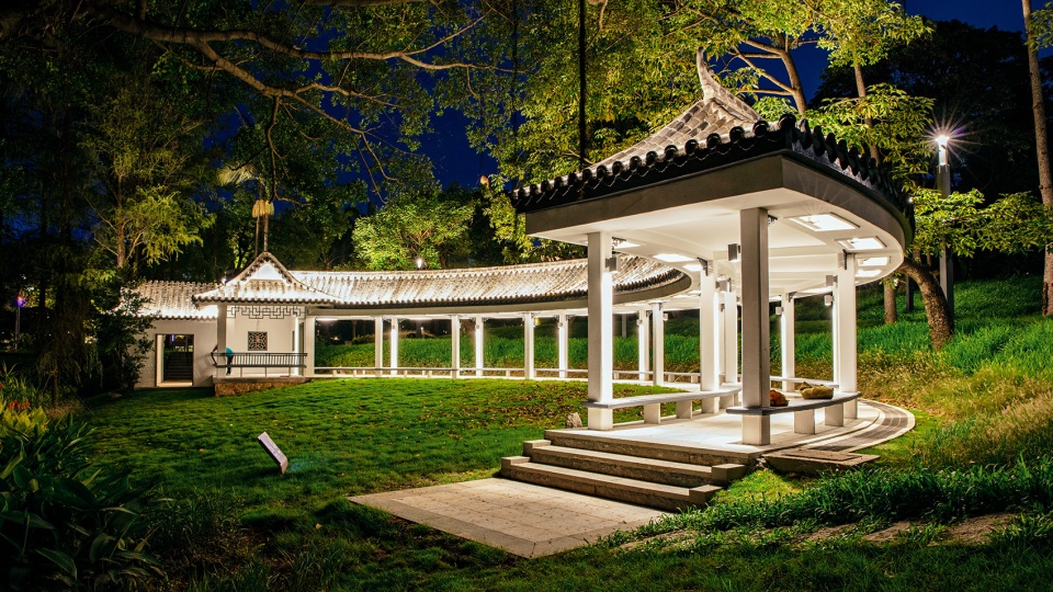 ▼公园内的建筑展现人与园的关系,The buildings in the park show the relationship between people and the park