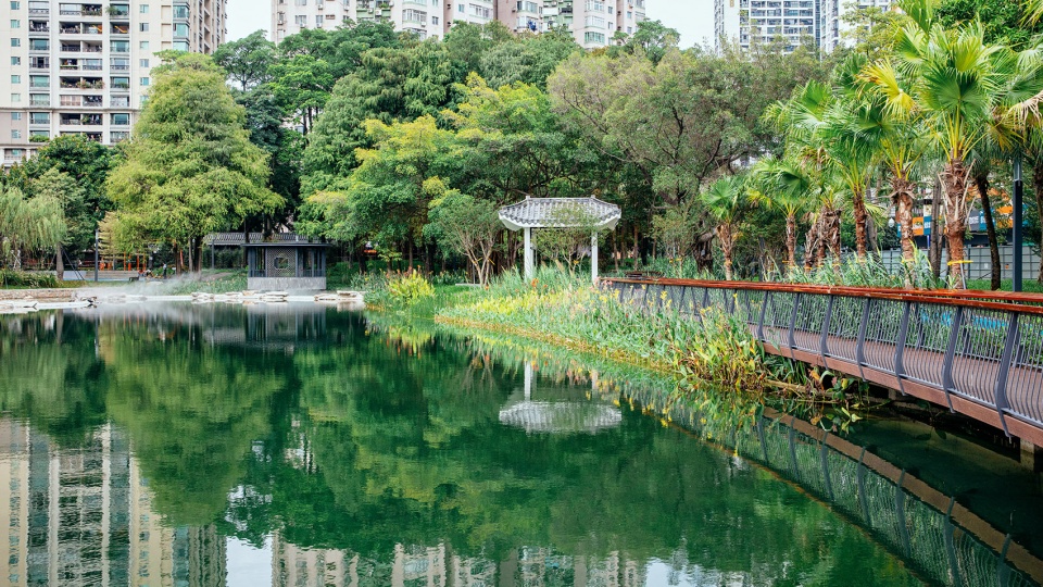 过去的三十年里,四海公园里的2094棵树木形成了成熟的植物群落,在高度的城市化格局下,为动物提供了非常丰富的栖息地。但遗憾的是,斑块之间连接度的单一化,影响了生物多样性的构成,也让水体的生态性下降。重构健康的生态循环,让趋近凝固的水体重现流动的光影,是此次改造中重要的目标。