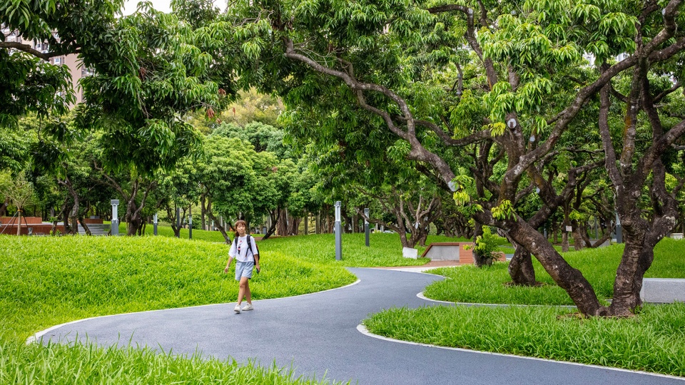 让公园容纳与时俱进的功能,弹性的空间让交互距离有可变性。设计选取场地曾有的水田肌理与当下的城市路网,在叠加中,找到场地的路径逻辑。倚水而建的环园步行系统以及渗透性的网状路径将自然带进生活的场景,路径让独立的板块功能重新交织、融合,非定义化的功能空间以期应对在时代进程里因社群重构不断变革的功能需求。