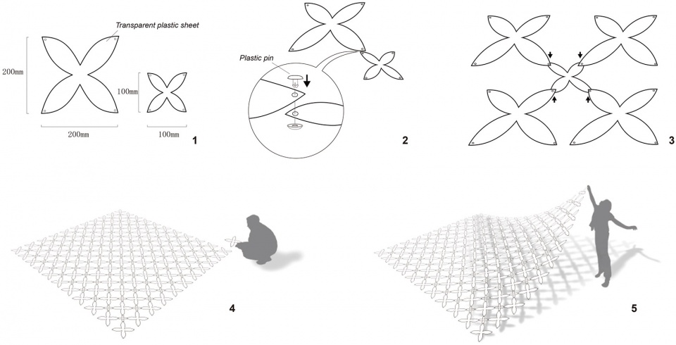 ▼景观装置的蝴蝶花纹连接细节,details of the butterfly pattern