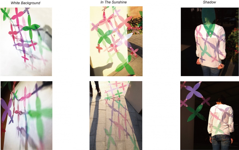 ▼蝴蝶花纹在不同背景和光环境下的光影效果