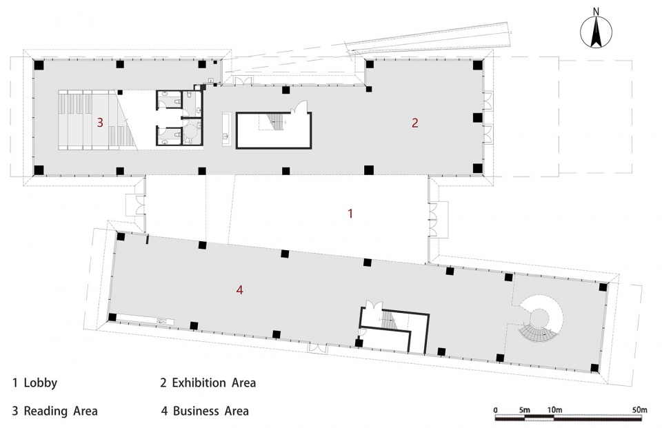 The simple architectural form and internal simple spatial form are complementary, as both of them constitute an “integrated” architectural spatial sequence. The open space at the main entrance highlights a sense of spaciousness. The southern discussion area is a flexible and open space, which serves the purpose of functionalism to some extent. Functional separation is carried out for the open space through components, which helps create connected yet independent small spaces. It sticks to the “integrated” principle and shows the spirit of place.