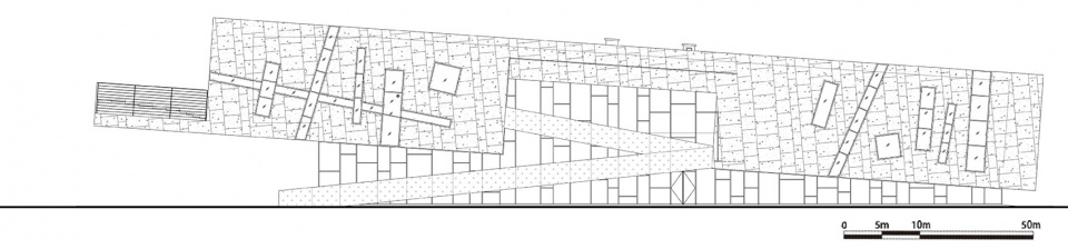 “Rusty steel plates” with rust stabilization treatment are used for the zigzag-shaped slope and partial façade. Rusty steel plates look yellow at first and become reddish brown finally, as rust continues to grow. They are 5-8 times the working life of common steel; besides, they are environmentally-friendly, coating-free and maintenance-friendly. These weathering resistant steel will turn golden yellow in the end, and such warm color greatly increases affinity and boosts the spirit of place.