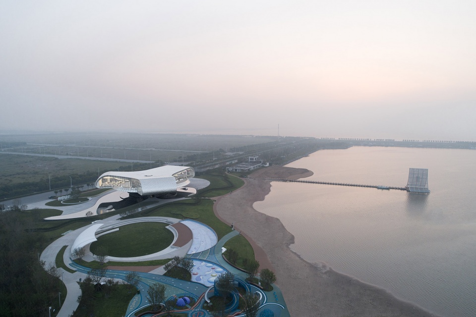 ▼浪花艺术馆远景鸟瞰,与其他功能区域通过弯曲的步道相连