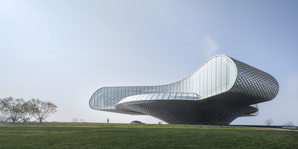 BIM technology is applied to the scale-shaped aluminum plate, which enables more than 13 thousand pieces of aluminum plate to fit properly on the façade and delivers a rhythmical upward spiral texture. The real-virtual façade has achieved perfect balance in efficient heat insulation and appropriate daylighting. All electromechanical devices are concealed underground, and the roof and building skin make up an integrated design. The pure form is realized with the help of technology.