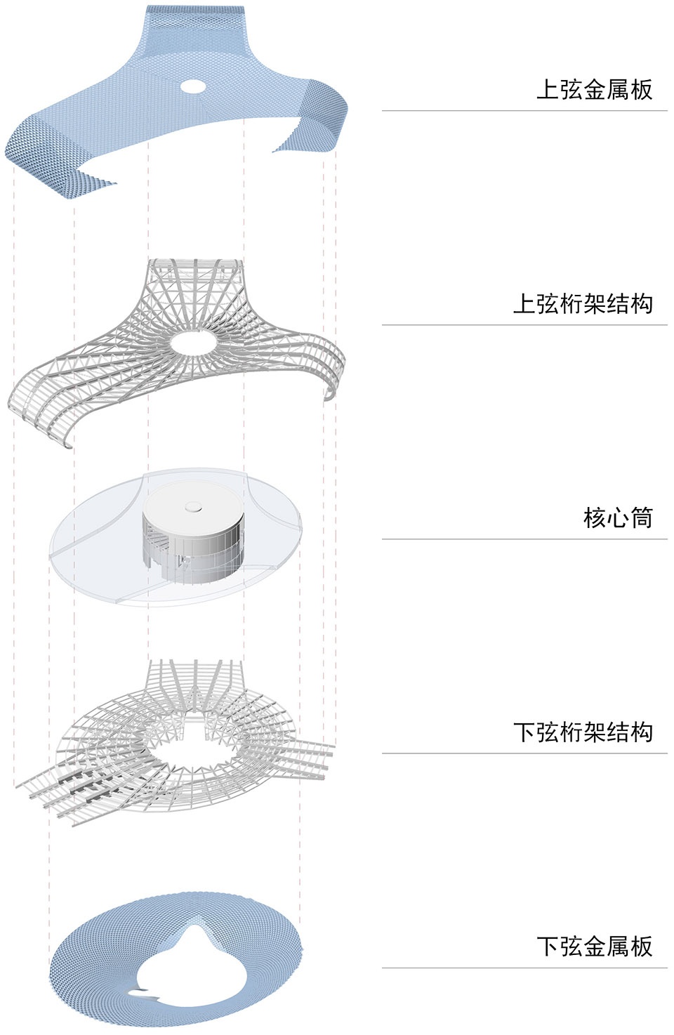 ▼结构分解图,exploded axonometric of the structure