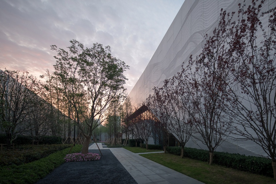 The second-layer facade design is particularly important. The designer uses parameterized skin texture and creates a poetic picture of Suzhou by lines. The abstract binary pattern goes through time and space in an attempt to give viewers non-figurative graphical information, so it can be Jiangnan landscape with misty rain, continuous Suzhou-style satin, flowing canal water or even a poet’s haunting homesickness or lovesickness.